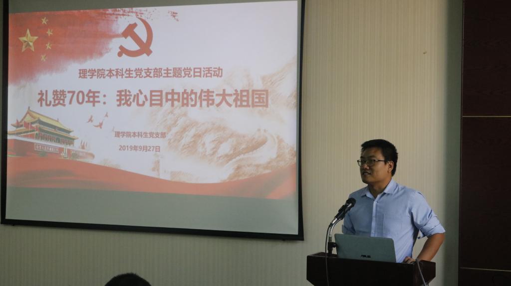 为庆祝新中国成立70周年,祝愿新时代的中国更加富强美丽。9月27日下午,英国be365官网本科生党支部在临潼校区骊山校园实验楼220开展了以“礼赞70年:我心目中的伟大祖国”为主题的党日活动。本科生党支部全体成员参加了活动,活动由党支部书记侯斌刚主持。