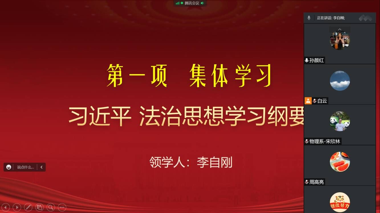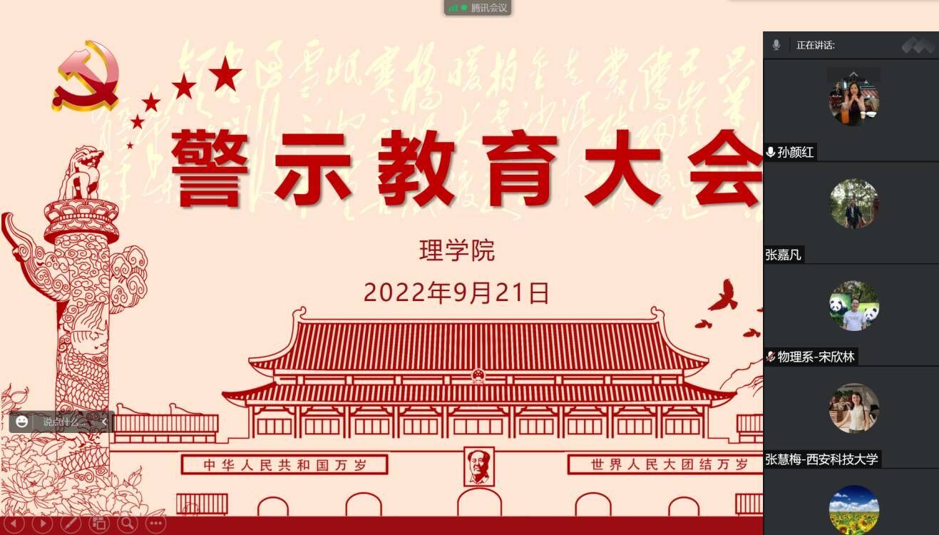 与会人员重温了《中国共产党纪律处分条例》《新时代高校教师职业行为十项准则》等法规制度,以“教育部公开曝光第十批7起违反教师职业行为十项准则典型案例”和“陕西省教育厅办公室关于7起违反教师职业行为十项准则典型案例”14起典型案例开展警示教育,并要求以党支部为单位,切实做好法治宣传教育和纪律教育学习重点工作,全体教师要自觉用习近平法治思想武装头脑、指导实践、推动工作,落实立德树人根本任务,增强纪律规矩意识,筑牢思想道德防线,为培养担当民族复兴大任的时代新人再立新功。