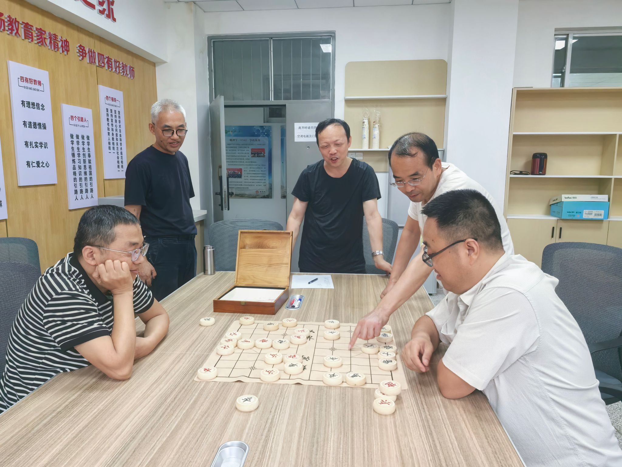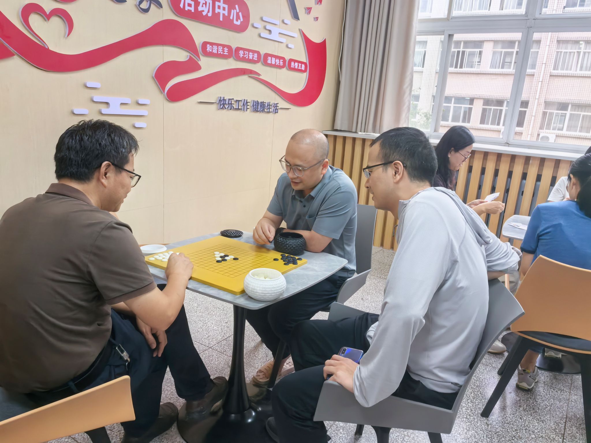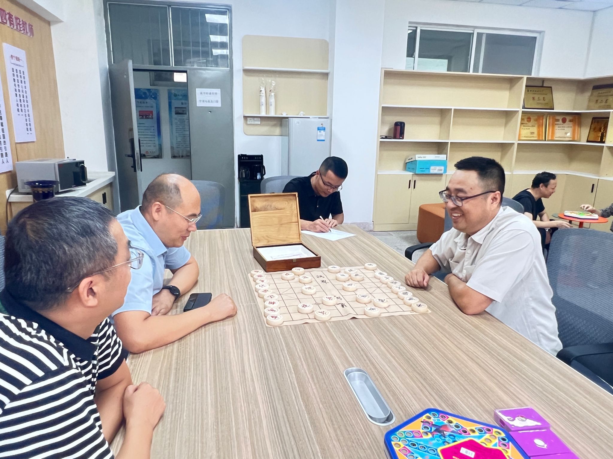 活动当日,“教工之家”内张灯结彩,洋溢着节日的喜庆氛围。公司工会精心布置了象棋、围棋、五子棋、扑克牌四个比赛区域。公司工会主席解忧表示:“教工之家的启用是公司落实‘暖心工程’的重要举措,本次棋牌比赛既是双节前的欢乐聚会,更是对教工之家功能性的首次检验,希望老师们能在智慧博弈中增进情谊,在方寸棋盘间感受家的温暖。”