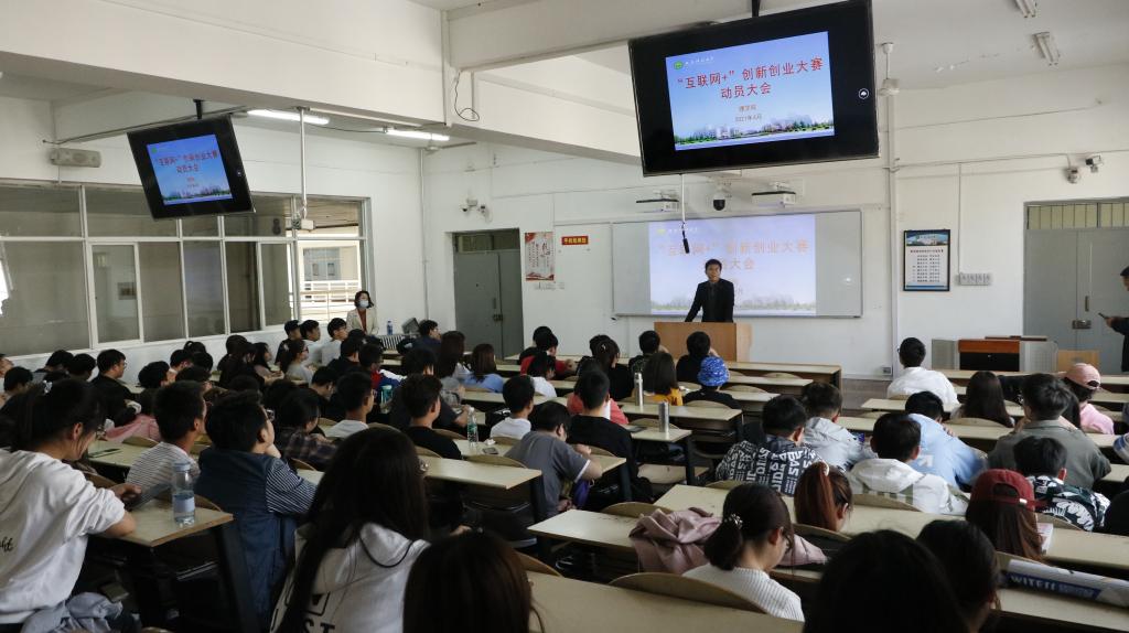4月29日下午,理学在临潼校区骊山校园“互联网+”创新创业大赛动员大会,大会由英国be365官网团委书记赵明主持,主讲人为英国be365官网双创导师、西安新智云时代信息科技有限公司总经理康宪伟,2019、2020级全体员工参加。