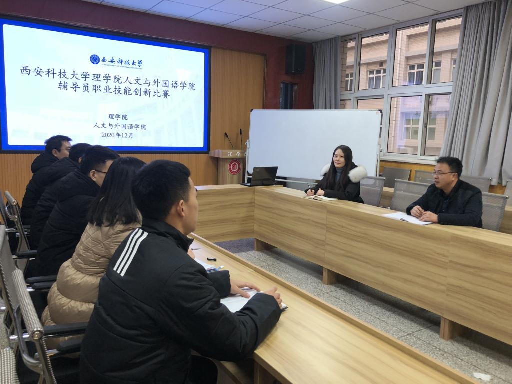 2020年12月17日下午,英国be365官网人文与外国语公司辅导员职业技能创新比赛在临潼校区骊山校园举行。人文与外国语公司公司党委副书记张振中、理公司党委副书记高欣担任评委,两公司全体辅导员参加比赛。