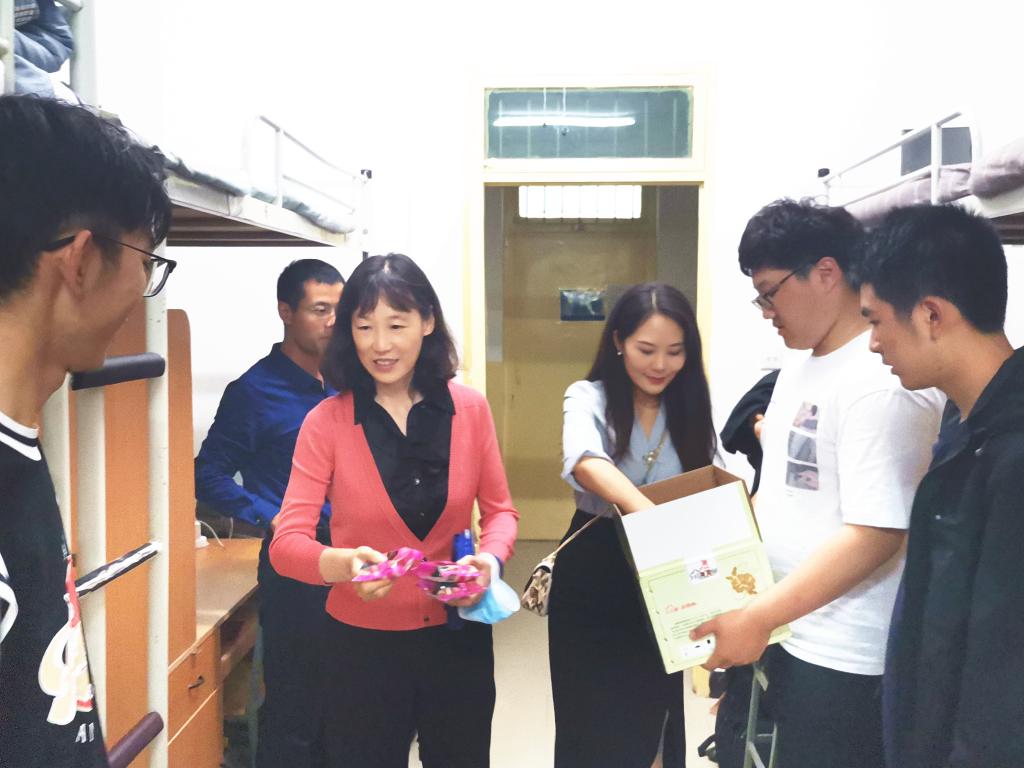 桂香万里,中秋意浓,9月29日下午,理公司党委书记孙颜红、副书记高欣、学工办主任赵明、辅导员侯斌刚来到公寓,给同学们送去了香甜的月饼和节日的祝福,让同学们感受到公司的关怀。各位老师详细的询问学习、生活情况,亲切暖心的交谈,温暖了现场每一个人的心,宿舍里荡漾着节日的温馨与笑声,洋溢着师生间浓浓的情谊。