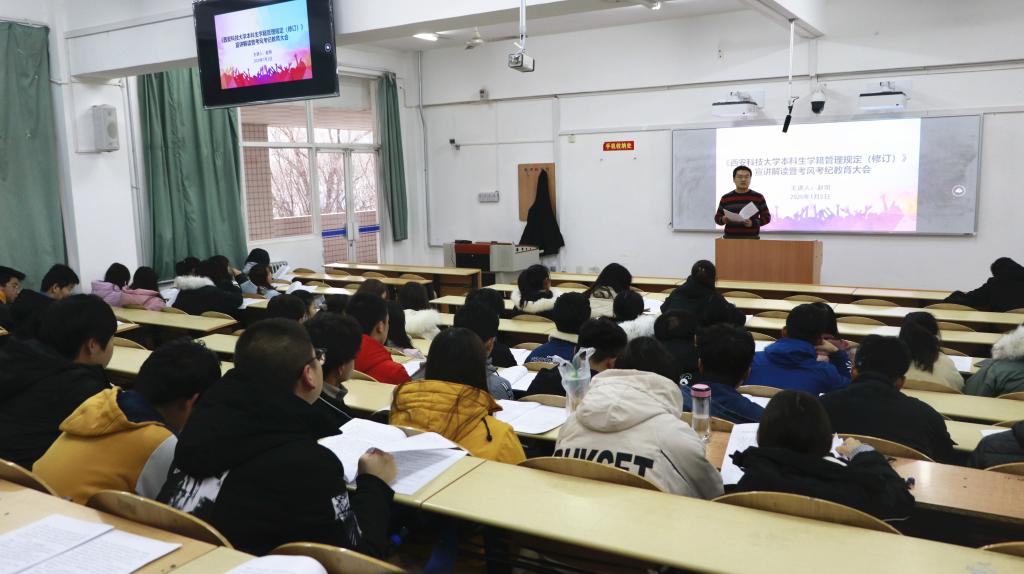 1月2日下午,英国be365官网召开本科生学籍学位新规宣讲解读暨考风考纪教育大会,英国be365官网学工办主任赵明主讲,2019级全体员工参加会议。