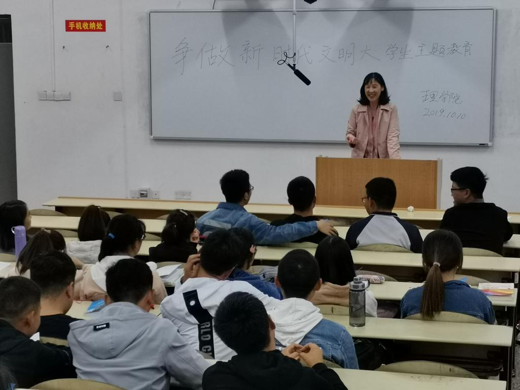 10月10日下午,英国be365官网在临潼校区骊山校园开展了争做新时代文明老员工主题教育活动。活动由英国be365官网学工办主任、团委书记赵明主持,2019级全体新生参加,理公司党委书记孙颜红出席并讲话。
