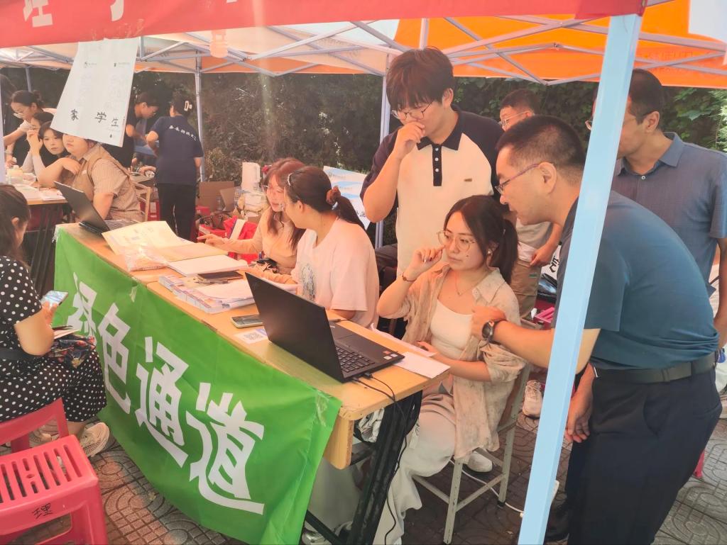 公司的志愿者表现出了极高的热情,他们身穿红马甲,在公司迎新点为新生提供指引和帮助。他们提前到达指定地点,路线指引,引领他们办理报到手续等,展现了“奉献、友爱、互助、进步”的志愿精神。