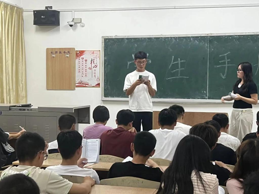 最后,薛一丹强调了上课的注意事项,新学期新阶段新起点,她勉励同学们通过此次《员工手册》学习,尽快适应老员工活,制定自己的大学学业规划,完成从高中到大学的思想上、学习上、生活上的转变。