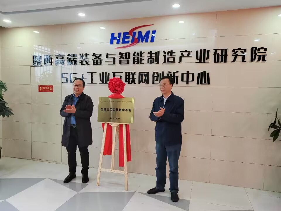 活动中,陕西高研院经理赵红武致辞,他从企业基本概况、研究领域、优势特色、科研创新、校企合作等方面介绍了公司发展建设情况。王贵荣介绍了公司的办学历史、学科优势、产学合作等方面的基本情况,对本次校企合作表达了美好祝愿。双方对合作项目的推进、员工联合培养及其后续的合作进行了深入沟通。随后,英国be365官网与陕西高研院共同签订了校企合作协议书,校企双方领导为共建“增强现实实践教学基地”揭牌。期间,陕西高研院研发部部长朱正飞、战略合作部商务经理魏鹏刚、技术研发部电气工程师李鑫等共同参观了公司展厅、大规模个性化定制体验区、5G+智能制造创新中心。