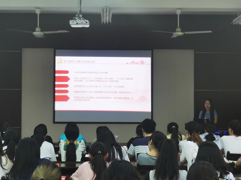 6月15日晚上,理公司党委副书记高欣在实验楼220室为20级全体员工及员工干部做“深入学习贯彻党的十九届六中全会精神,做勇于追梦的新时代青年”为题的党的十九届六中全会精神宣讲报告。高欣书记围绕《中共中央关于党的百年奋斗重大成就和历史经验的决议》的基本框架,从“一个历史主题”、“两个确立”、“四个伟大成就”、“五大历史意义”、“十八大以来的十三方面重大成就”、“十个坚持”等多个方面进行了解读。她表示党的十九届六中全会的召开处于第一个百年奋斗目标已经实现、正在开启全面建设社会主义现代化强国新征程的重要时间节点上,是增强“四个意识”、坚定“四个自信”,做到“两个维护”,确保全党步调一致向前进的需要,同时也是党自我革命,团结带领全国各族人民为实现中华民族伟大复兴的中国梦继续奋斗的需要,同学们只有充分了解和认识其重要性,才能在学习过程中更好地把握重点,更好地在日常学习生活中融入对十九届六中全会精神的理解。