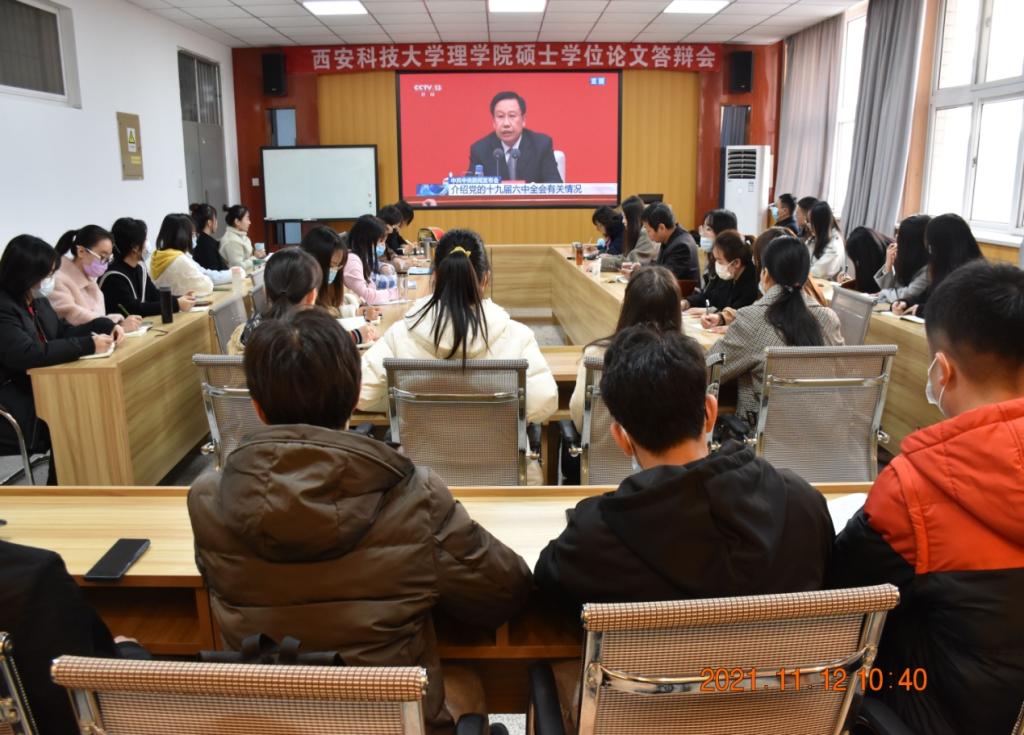 11月12日,中共中央举行新闻发布会,介绍党的十九届六中全会有关情况,解读党的十九届六中全会精神。 理公司党委组织师生在骊山和雁塔两校区集中收看了新闻发布会直播,大家认真聆听、学习领会大会精神。