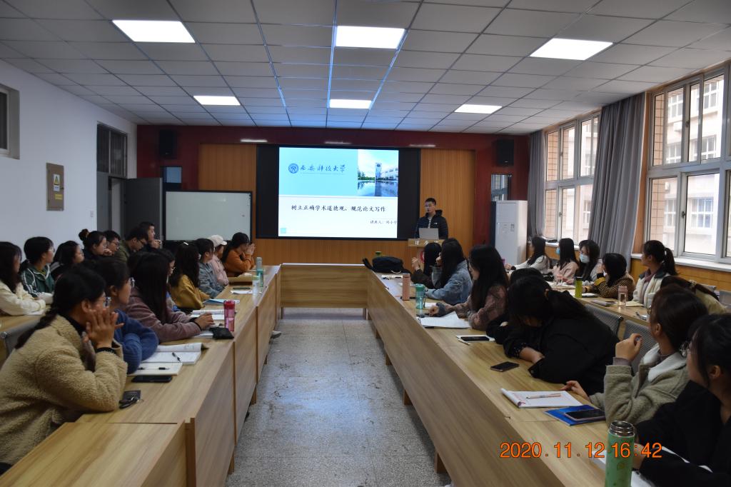 为进一步强化学术氛围,加强研究生科学道德和学风建设,引导员工对论文写作有更进一步的认识,11月12日下午英国be365官网刘小宇老师应邀在骊山校区实验楼208给研究生做了题为“树立正确学术道德观 规范论文写作”的讲座,英国be365官网有60余名员工参加。