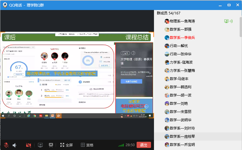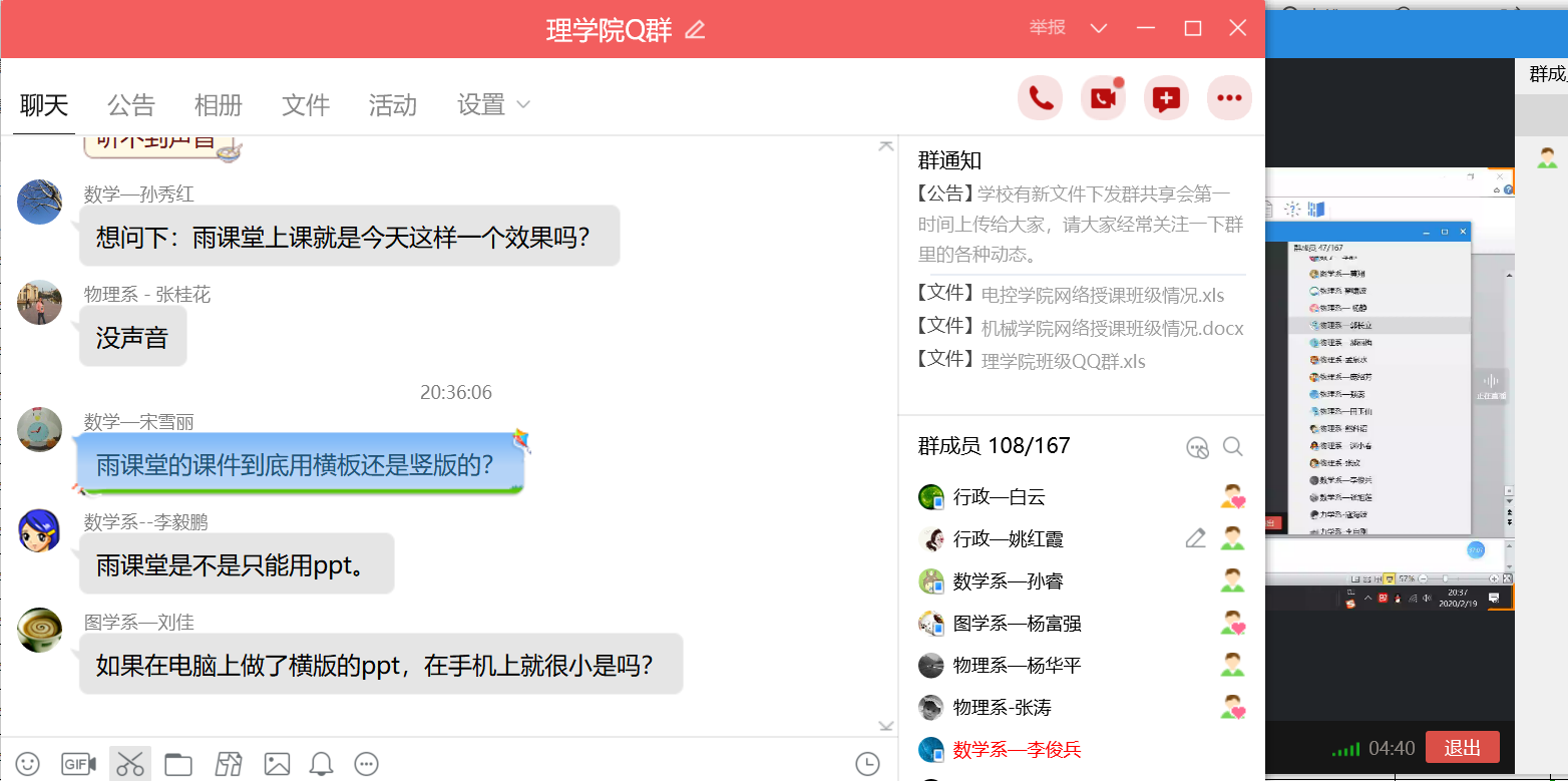 2月19日晚,英国be365官网使用“腾讯视频”进行在线教学工作培训,培训会邀请物理系教师、教育部智慧教学之星鱼海涛副教授和数学系刘杰副教授分别以“如何利用学堂云及雨课堂快速部署线上教学”和以“基于超星学习通的混合式教学”为主题,从网络课程模式探讨、雨课堂移动端和PC端的使用、超星学习通的使用及线上教学常见问题等方面进行了细致地讲解,分享了线上教学模式的组织、教学方法和经验。并对大家的提问进行了详细解答。