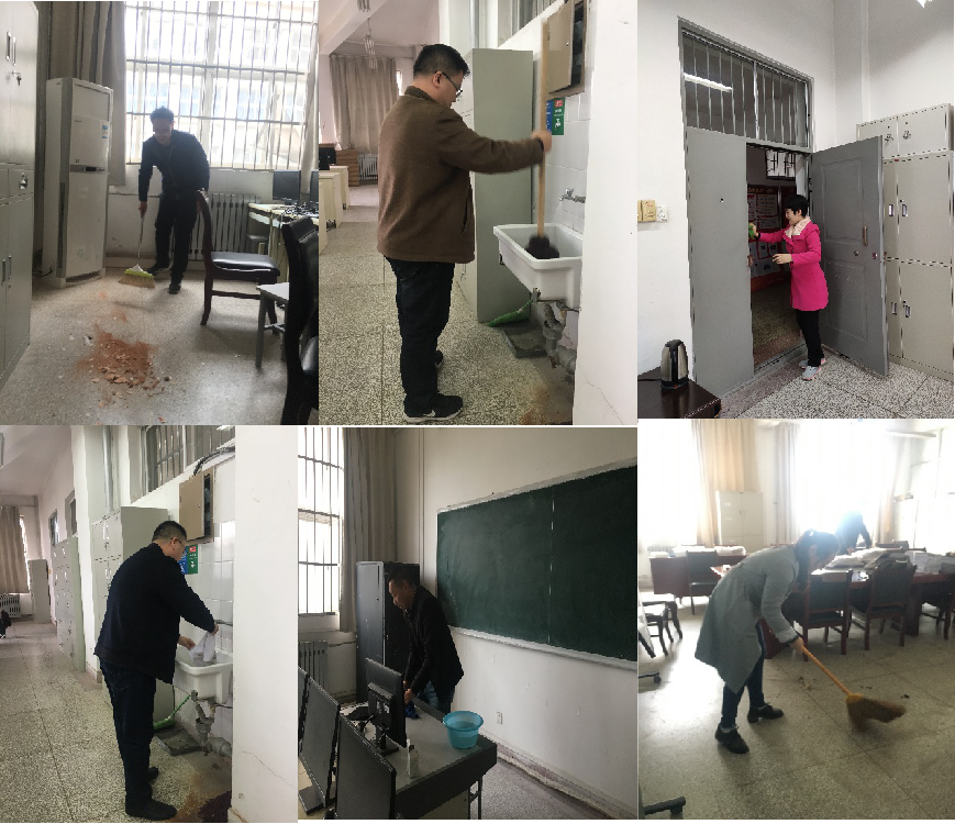 为保障数学与应用数学专业第三方专业评估的顺利进行,为教工备课、从事科研活动有一个舒适的工作环境,为员工实验有一个干净整洁的学习环境,结合“不忘初心、牢记使命”主题教育,数学系第二党支部于2019年11月8日下午组织开展义务劳动,在临潼骊山校区对数学系办公室、数学系实验室、研究生导师工作室进行卫生大扫除。为师生办了一件实事好事,以实际行动践行“全心全意为人民服务的根本宗旨”。