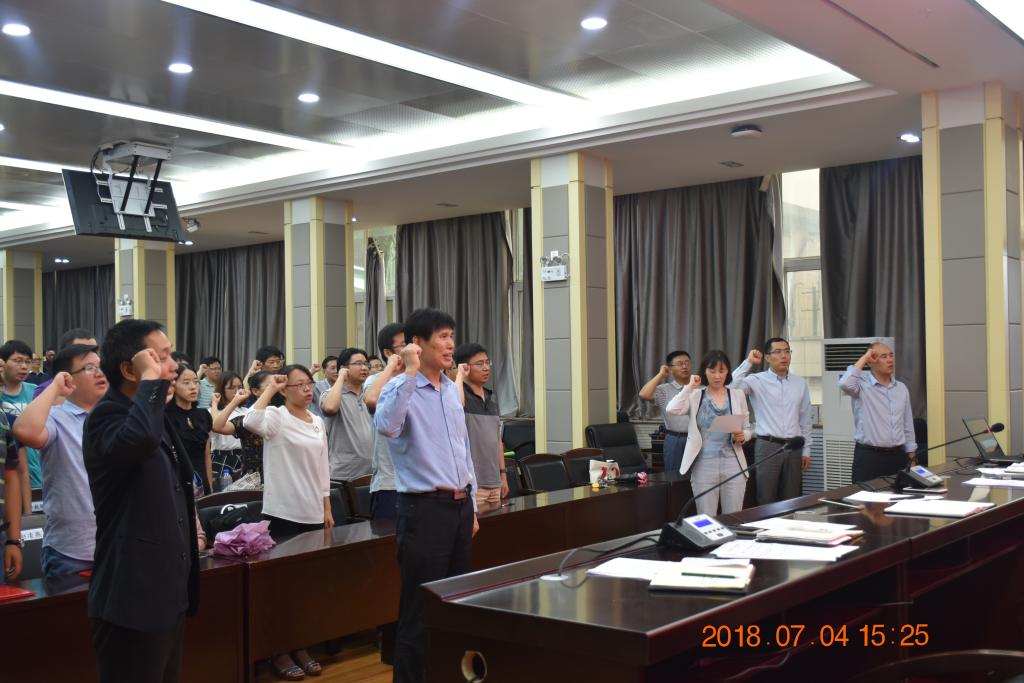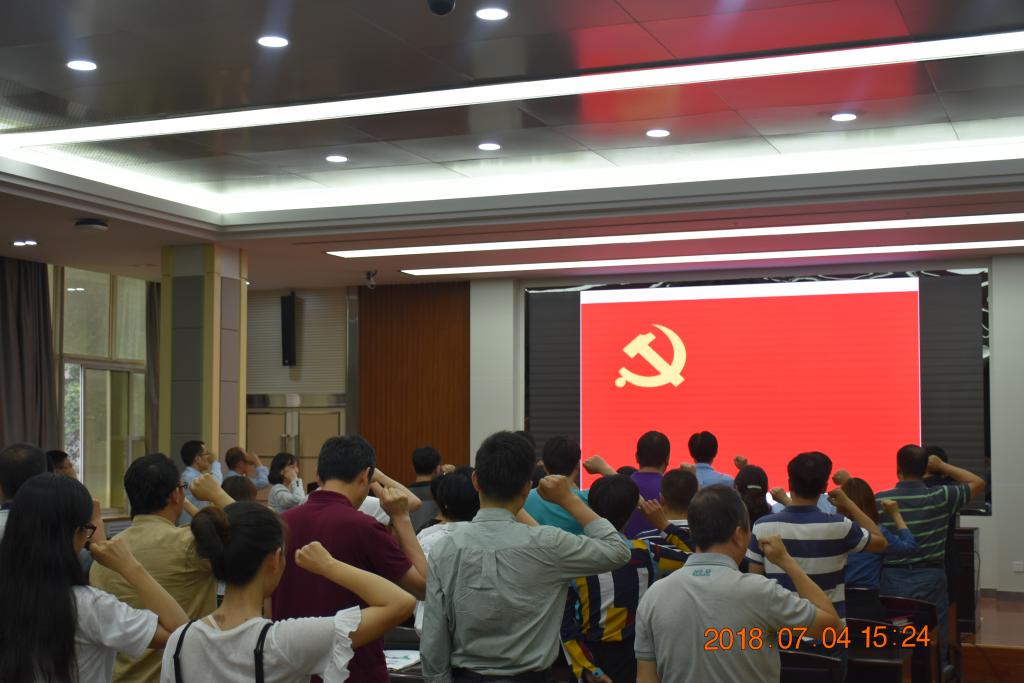 最后,党委书记孙颜红同志带领全体党员面向党旗重温了入党誓词,共同回顾了中国共产党的发展历程,并强调:希望全院师生以受表彰的先进典型为榜样,向先进学习,向先进看齐,无论是教学一线的教师党员,还是员工党员,都要在自己的本职岗位上当好标杆、做好表率,以坚强的党性、务实的作风、振奋的精神、强烈的使命感和责任感,积极推进公司各项工作,在公司创建国内一流的特色鲜明的高水平教学研究型大学的进程中再立新功!