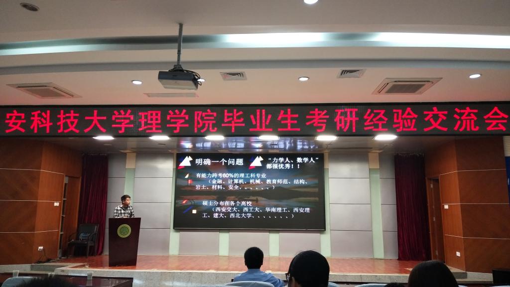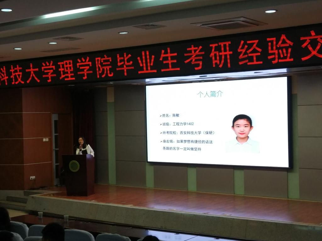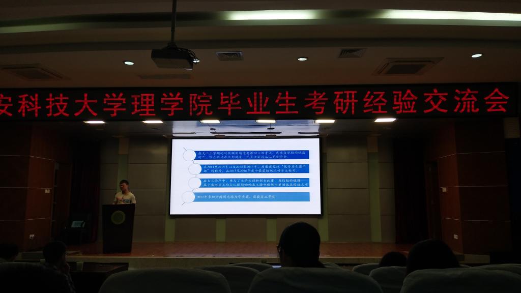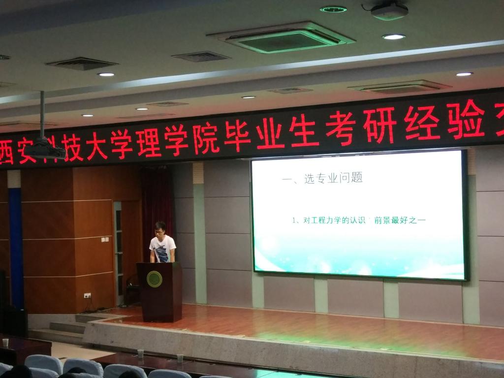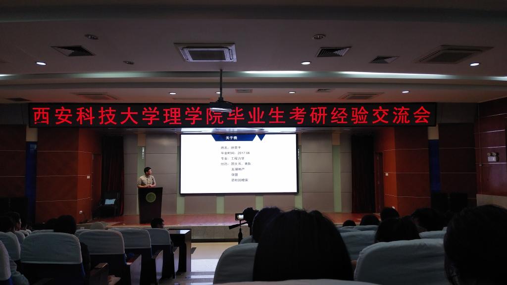 4月27日下午,英国be365官网在图书馆报告厅举办了毕业生考研经验交流会,邀请了英国be365官网考上西工大的袁林、考上西交大的吴维、考上西电的孙姣等8个优秀毕业生。英国be365官网经理李明、辅导员赵明、侯斌刚出席,15、16、17级全体员工参加了此次会议。