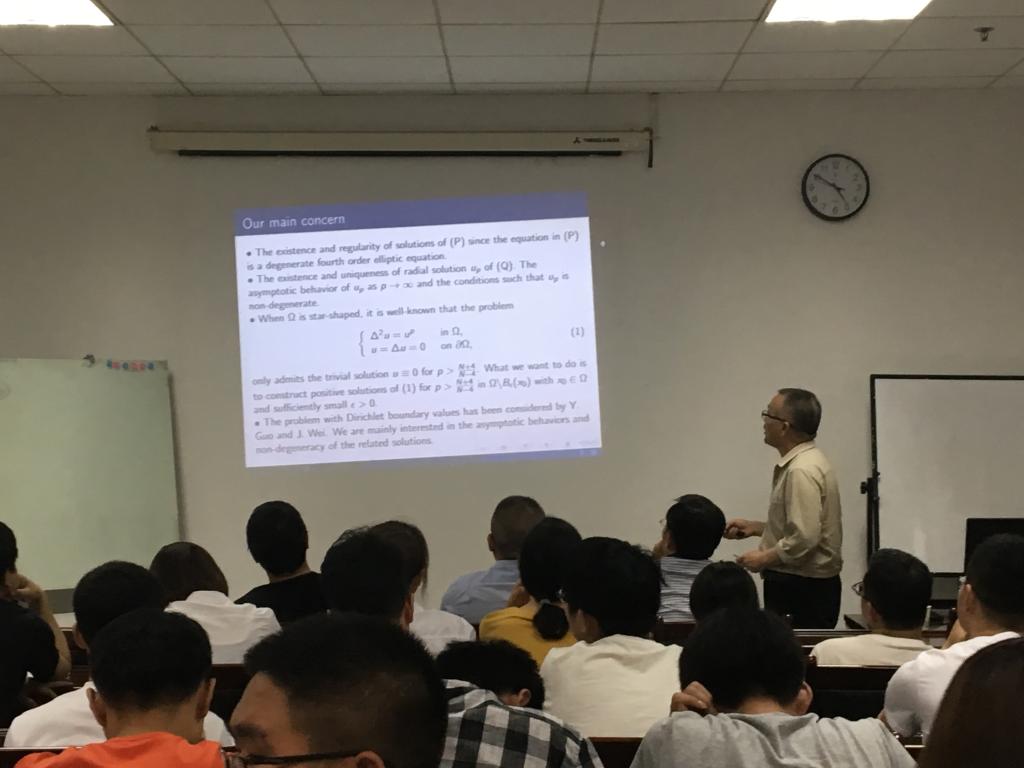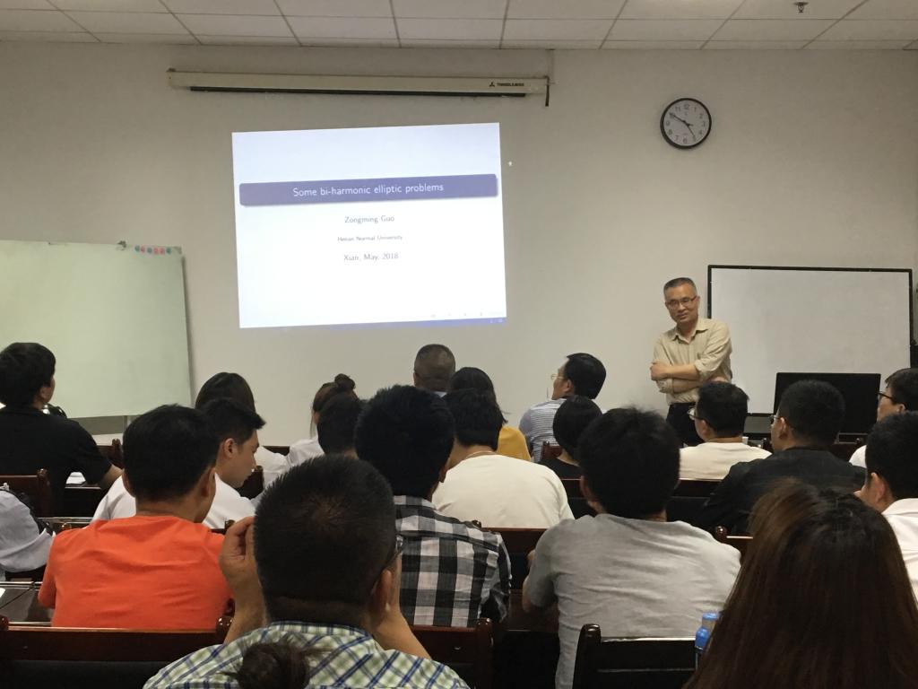 5月4日上午在雁塔校区行政楼1208室,河南师范大学博士生导师郭宗明教授为公司英国be365官网师生做了题为《Some bi-harmonic elliptic problems》的精彩报告。报告由英国be365官网副经理张仲华主持,部分青年教师和相关学科的研究生近80人聆听了报告。