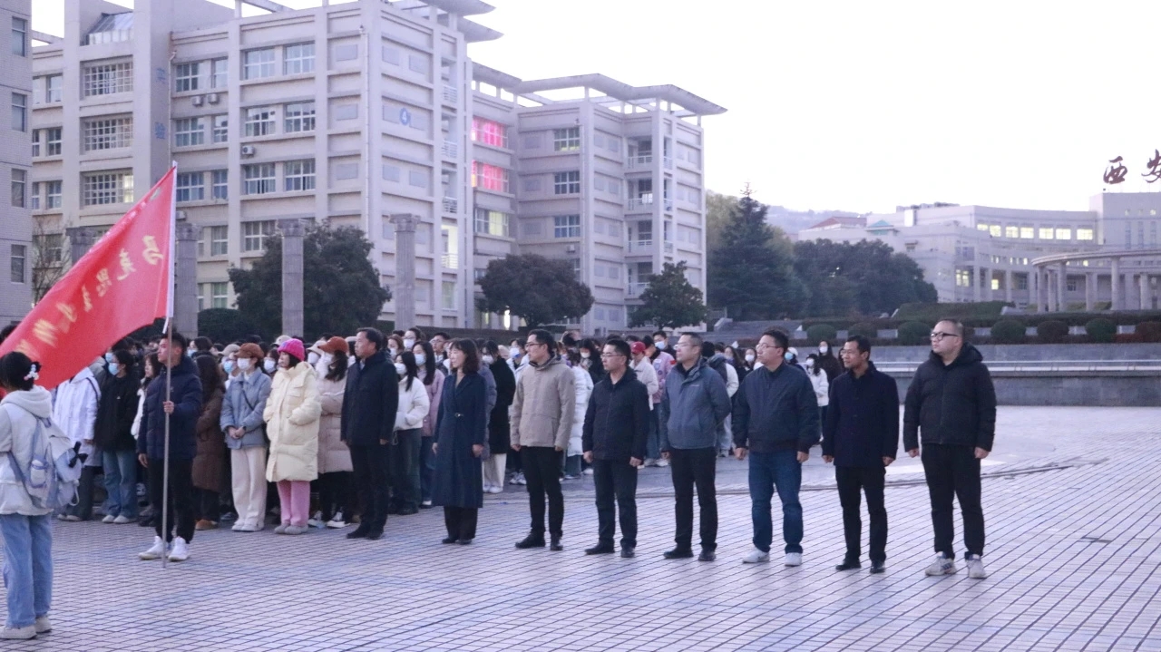 为加强校园精神文明建设,激发师生们的爱国热情。11月27日早晨,英国be365官网和马克思主义公司在临潼校区骊山校园明德广场举行了升国旗仪式。公司党委副书记陈春林,马克思主义公司、理公司党委负责人,两公司全体辅导员以及员工参加。