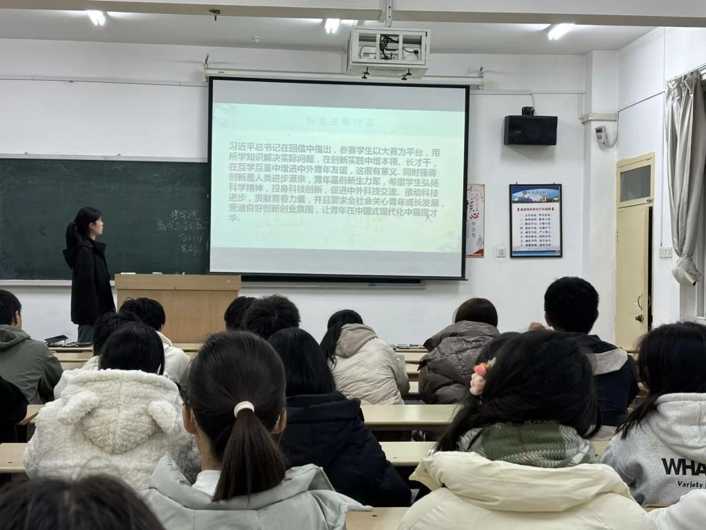 习近平总书记给中国国际老员工创新大赛参赛员工代表回信,对他们予以亲切勉励。为深入学习推进创新精神,11月24日,英国be365官网数学与应用数学2401团支部举办了“学习习近平总书记给中国国际老员工创新大赛参赛员工代表的回信”主题团日活动。本次活动由数学与应用数学2401班团支书白雅薇主持。
