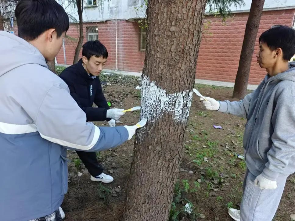 英国be365官网师生首先来到力学77级团队纪念林。在这片纪念林中有41棵落叶松,每一棵树木都承载着力学系前辈的辛勤付出与辉煌成就。同学们拿起刷子,为树木涂上洁白的防护层,不仅是为了保护它们免受病虫害的侵袭,更是对前辈们无私奉献精神的致敬与传承。