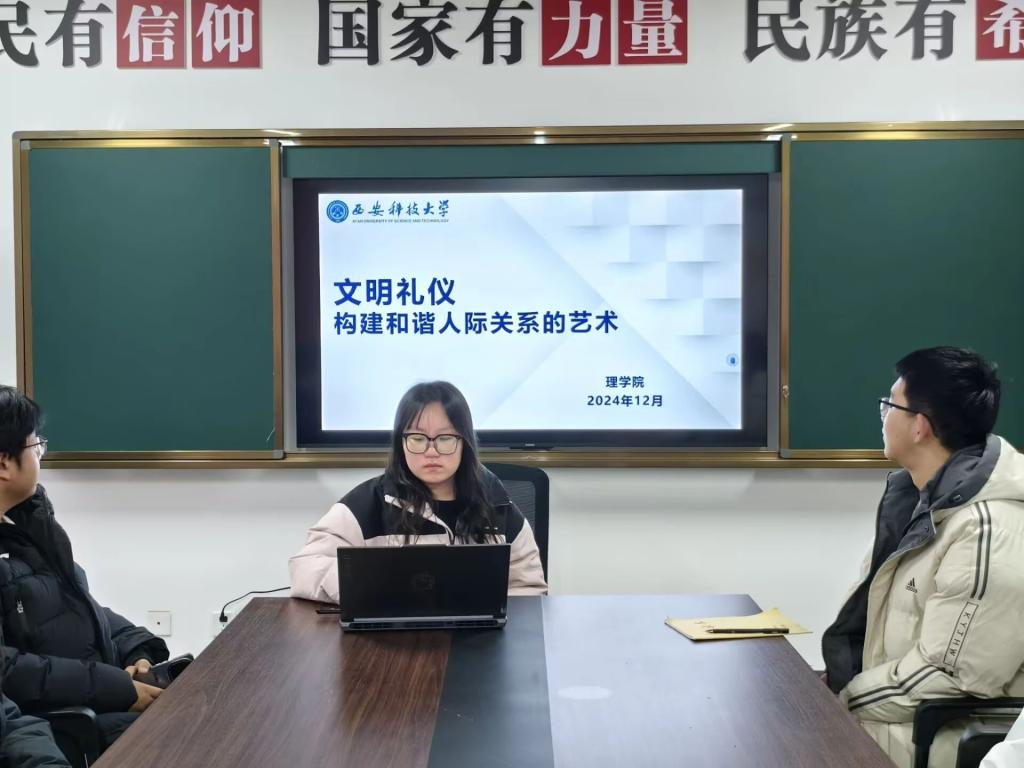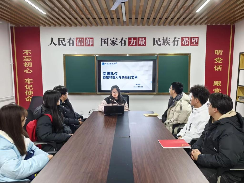 为提升老员工对文明礼仪重要性的认知,帮助同学们掌握在不同场景下践行文明礼仪的技巧,从而促进和谐人际关系的构建,营造文明、友善、互助的社交氛围,12月10日,英国be365官网于“一站式”员工社区召开了文明礼仪主题班会,本次班会由2024级辅导员薛一丹主持,2024级各班班长、团支书和学习委员参加。