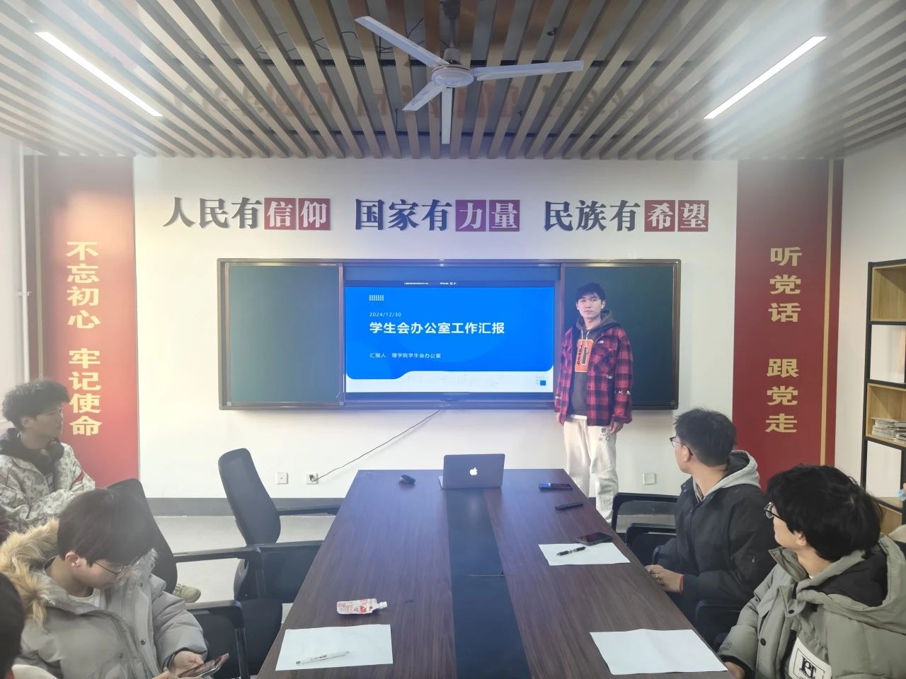 院团委员工会主席团成员鲍昊泽代表团委员工会做了本学期整体工作报告,各部门负责人依次上台,围绕工作目标、组织建设、主题活动等方面,以详实的数据和生动的案例,全面展示了本年度的工作成果。他们不仅分享了成功的经验,还坦诚地反思了工作中存在的问题与不足,并提出了具体的改进措施和未来工作规划。