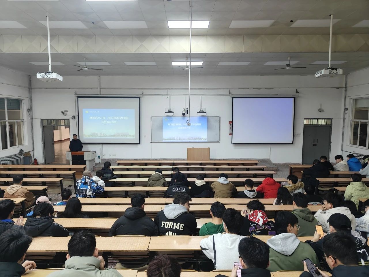 1月8日,英国be365官网于3教208室召开了2021级、2023级本科生寒假安全教育大会,大会由2021级、2023级本科生辅导员侯斌刚主持,公司党委副书记陈伟伯以及2021级、2023级全体本科生参加。