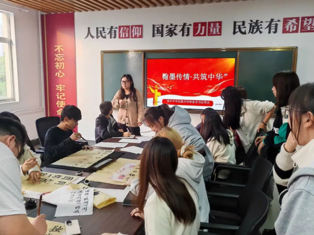 辅导员薛一丹老师在员工社区主持了“培根铸魂,石榴花开”主题诵读比赛,丰富了员工们的校园文化生活,锻炼了语言表达能力;开展“勿忘国耻,珍视和平”九一八主题党日活动等。