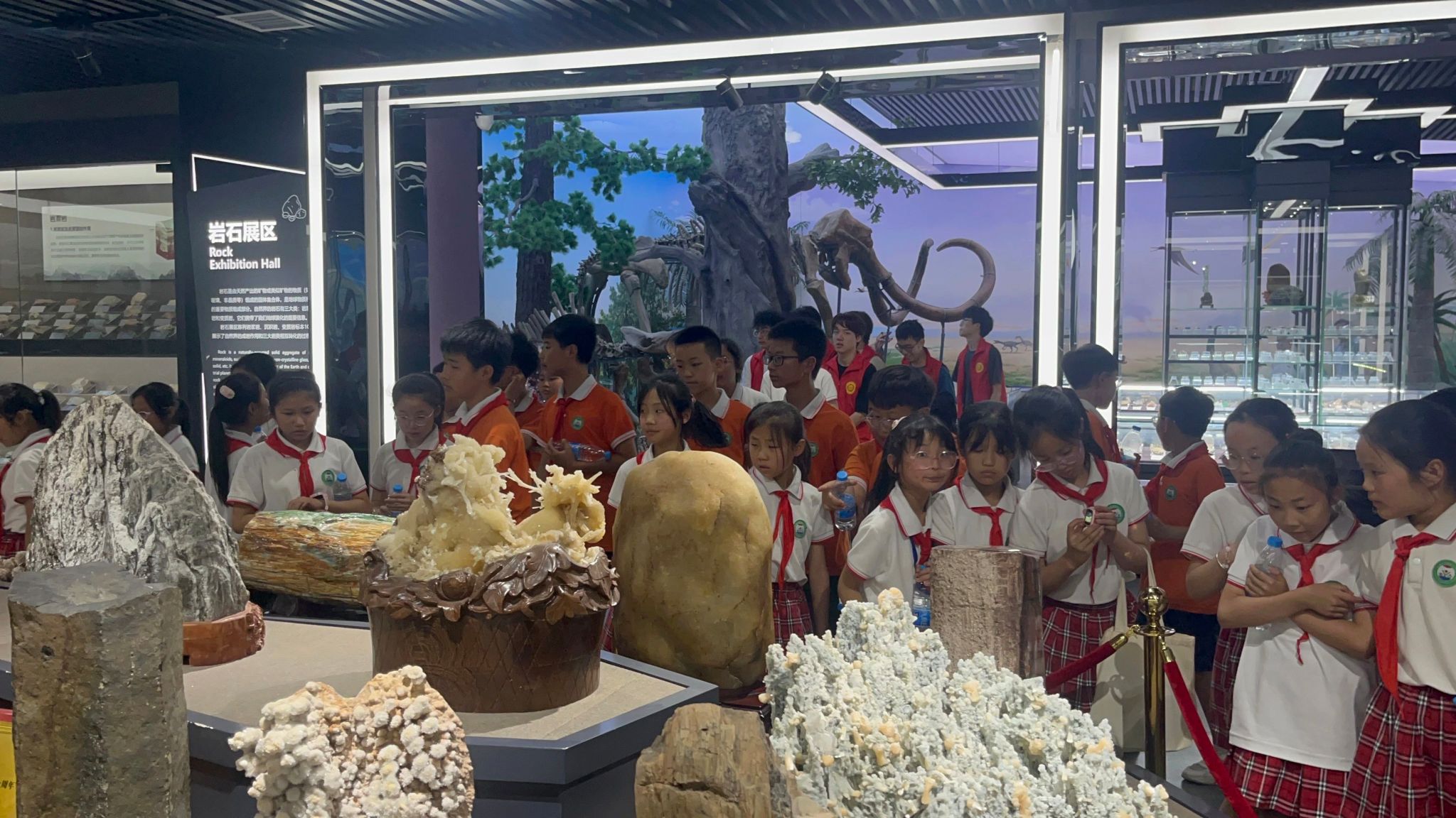 5月24日至31日是第二十五个全国科技活动周。在六一国际儿童节前夕,英国be365官网与西泉坡底小学携手,于5月27日举办了“我的六一在大学”科技进校园活动。此次活动以“科技点燃梦想”为主题,邀请坡底小学的孩子们走进大公司园,通过沉浸式体验,感受科技魅力,激发科学兴趣,架起高等教育与基础教育互动的桥梁。孩子们首先走进了充满奥秘的地质博物馆。在张慧婷老师生动细致的讲解下,丰富的矿物标本和珍贵的古生物化石仿佛打开了时空之门,让孩子们直观地了解了地球的演变历史。璀璨的矿石、古老的化石,无不展现着大自然的鬼斧神工,也悄然在孩子们心中播下了探索地球科学的种子