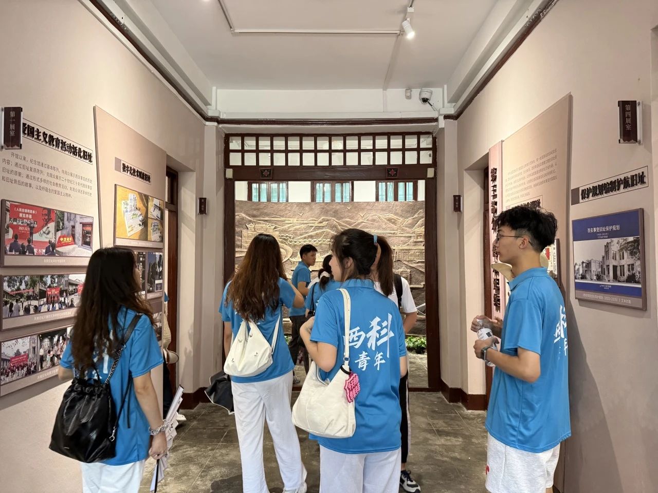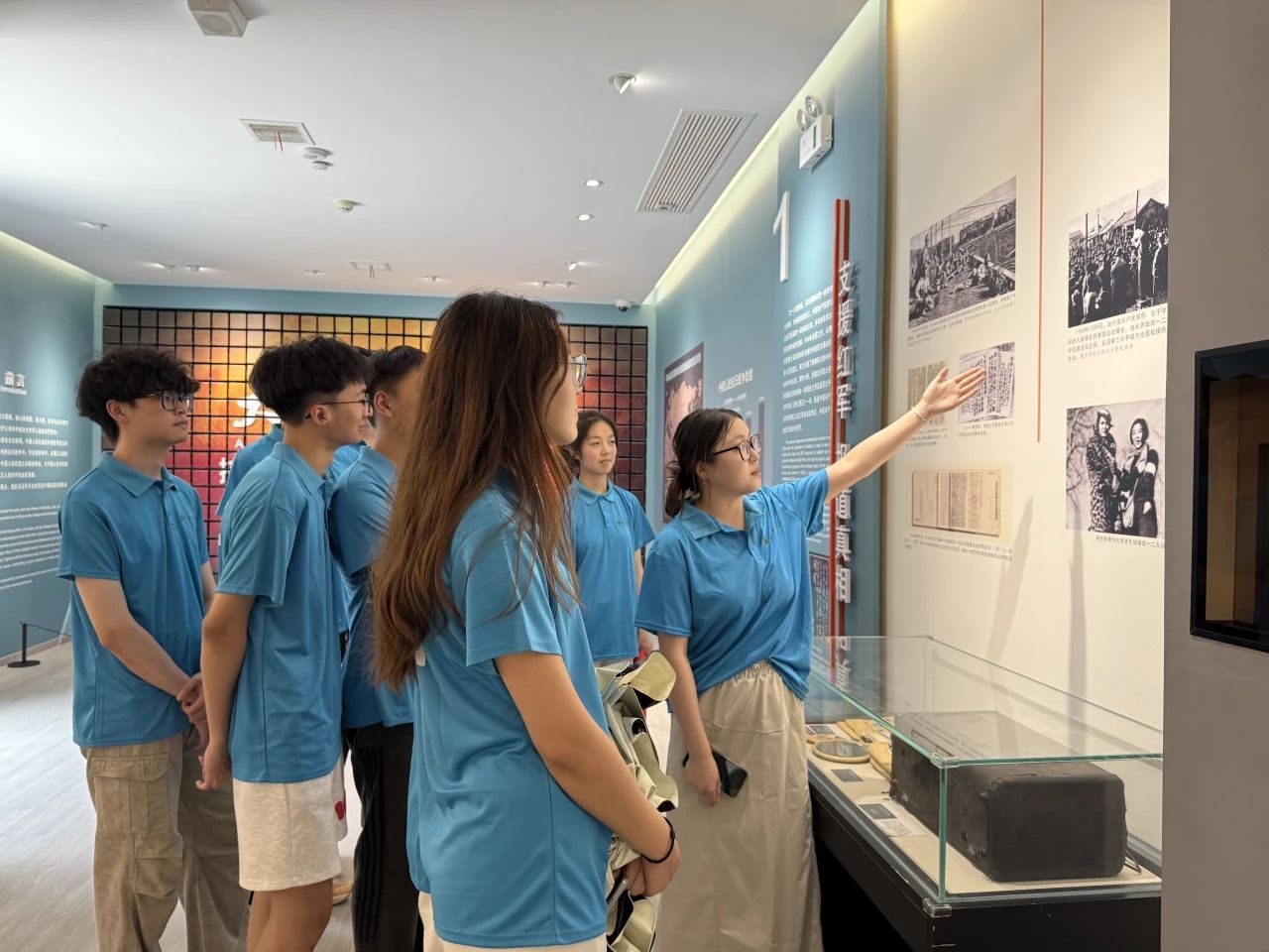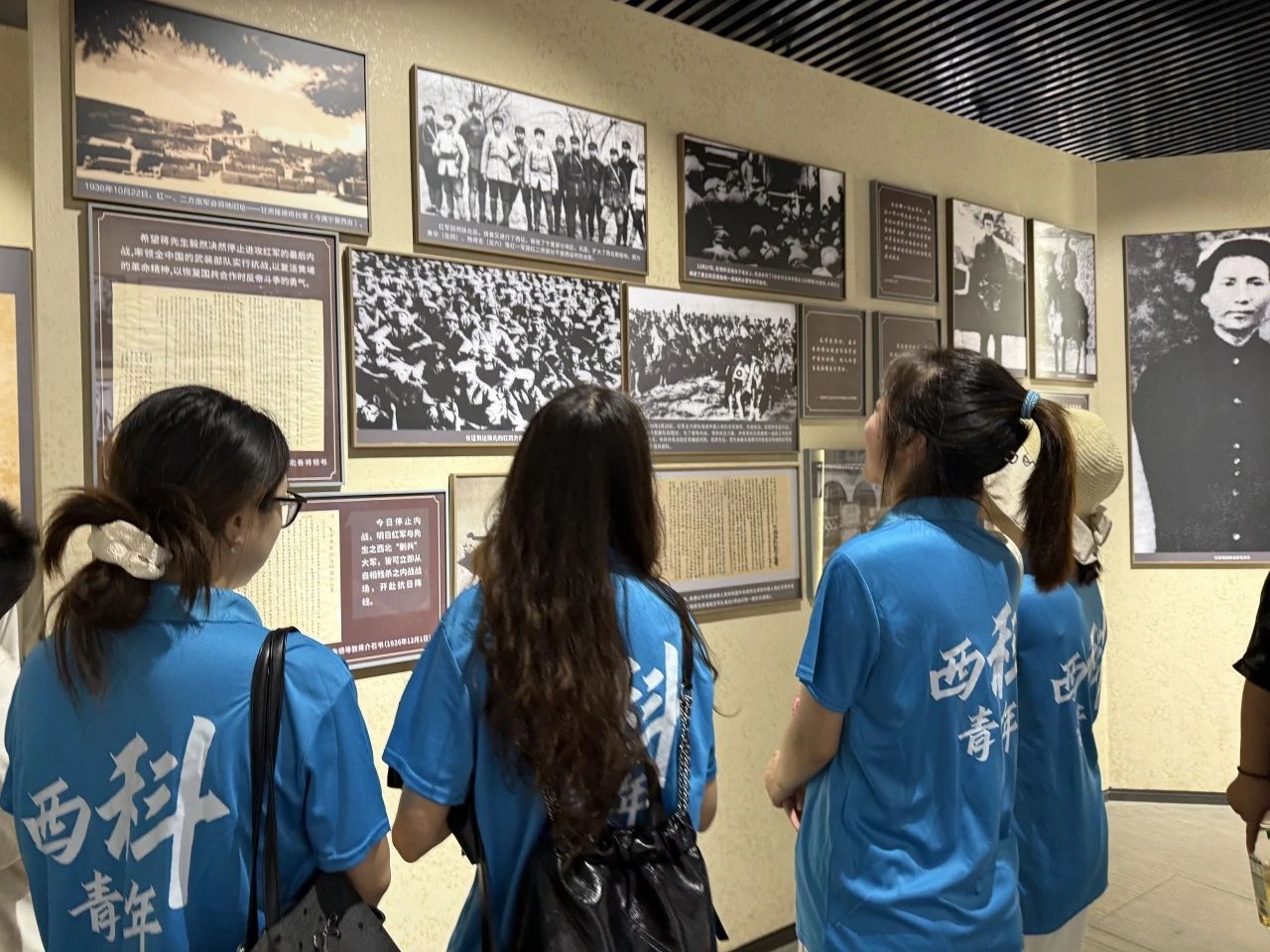 活动中,同学们依次参观了旧址内的办公室、会议室、宿舍、厨房等复原场景,仔细聆听了关于周恩来、朱德、刘少奇等老一辈无产阶级革命家在此工作和生活的感人故事。泛黄的文件、锈迹斑斑的武器、简陋的生活用品,每一件文物都承载着厚重的历史记忆,生动展现了革命先辈们在艰苦环境中坚守信仰、无私奉献的崇高精神。同学们不时驻足凝视这些珍贵文物,彼此轻声交流感悟。 大家沉浸在对革命历史的追思中,深切领悟到先辈们为国家独立、民族解放所付出的巨大牺牲与不懈努力。