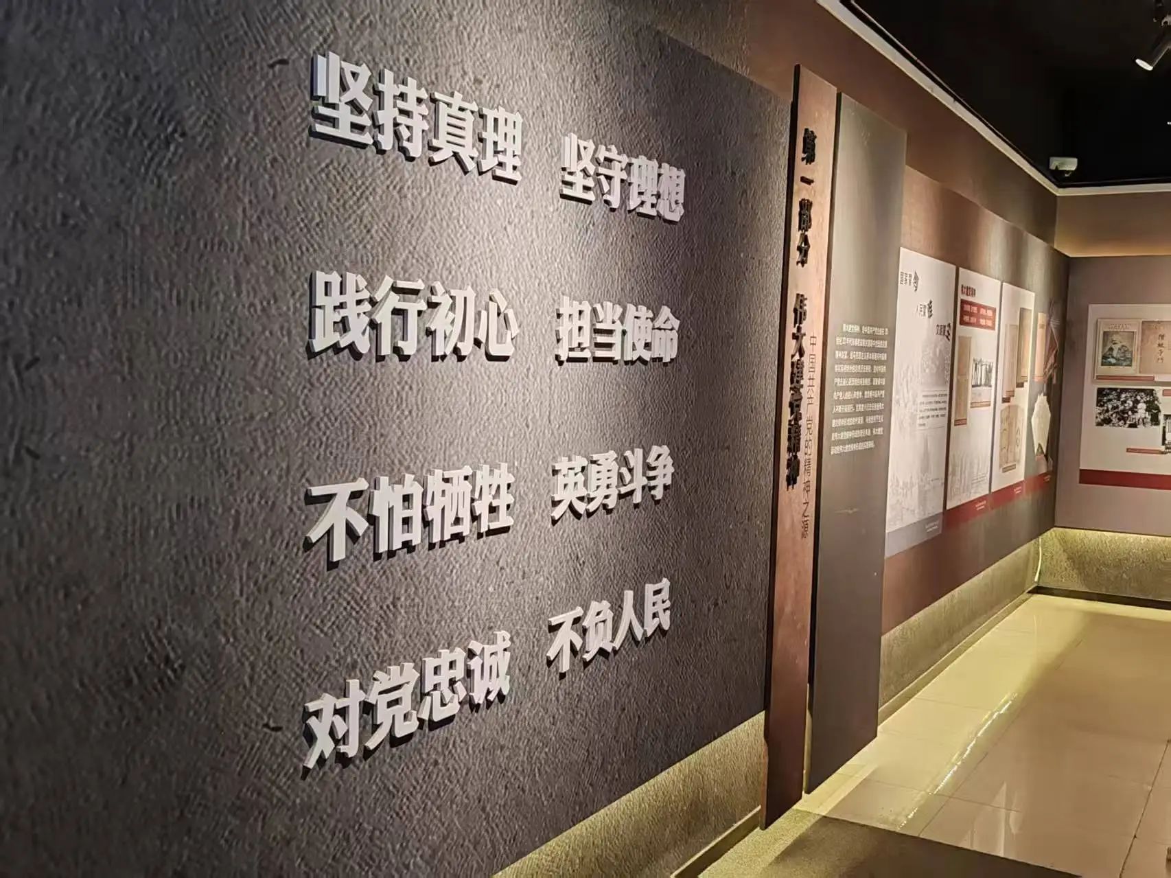 参观结束后,阳光透过纪念馆的雕花窗棂,在青灰色的砖墙上洒下斑驳光影。在鲜红的党旗下,同学们整齐列队,神情庄重,举起右拳,由应用统计2401班董妍领誓,庄严宣读入党誓词。“我志愿加入中国共产党,拥护党的纲领,遵守党的章程,履行党员义务,执行党的决定,严守党的纪律,保守党的秘密,对党忠诚,积极工作,为共产主义奋斗终身,随时准备为党和人民牺牲一切,永不叛党。”铿锵有力的誓言回荡在纪念馆内,不仅是对革命先辈的深切缅怀,更是对初心使命的坚定重申,让在场的每一位同学都受到了一次深刻的党性教育和精神洗礼。
