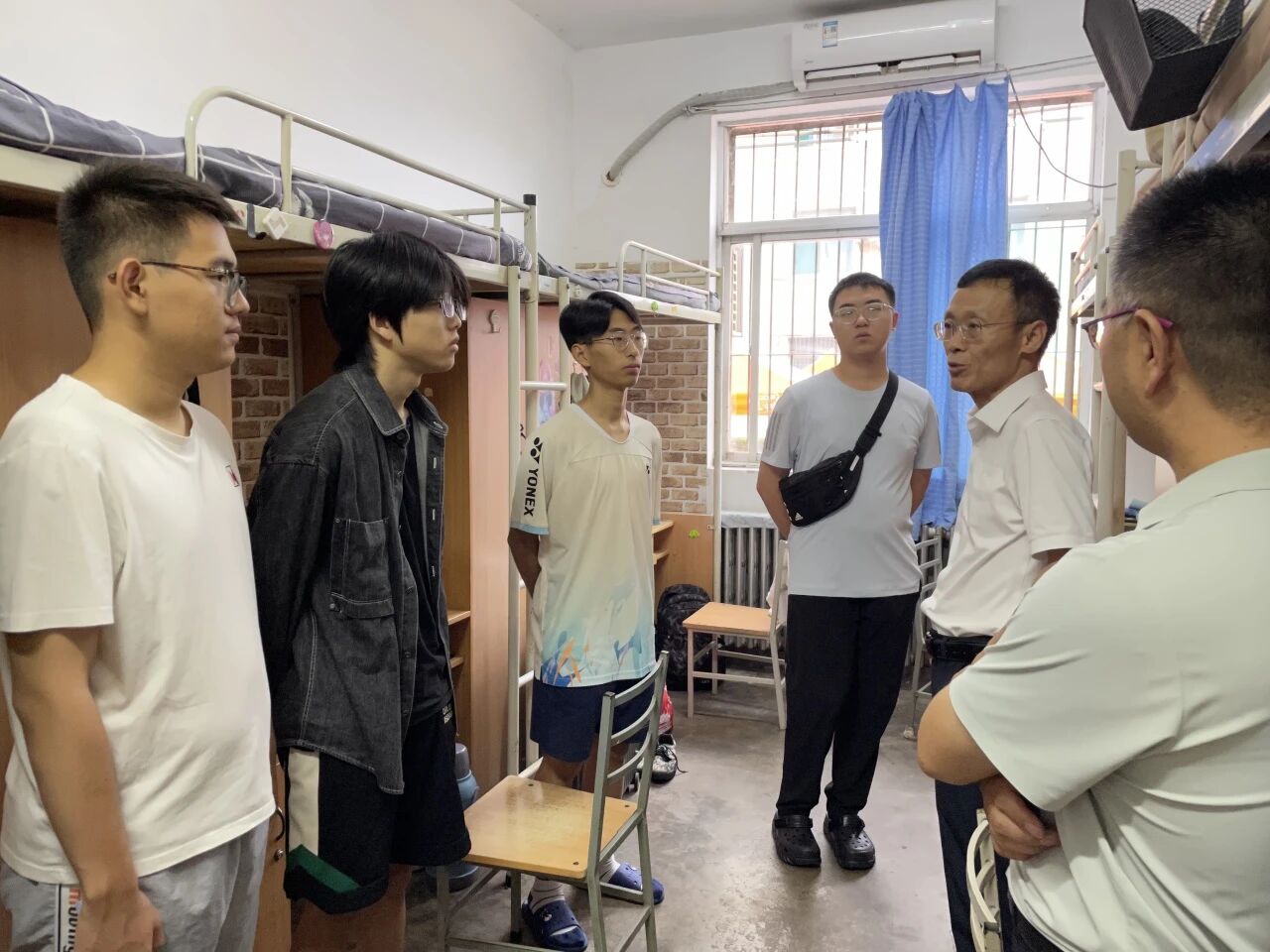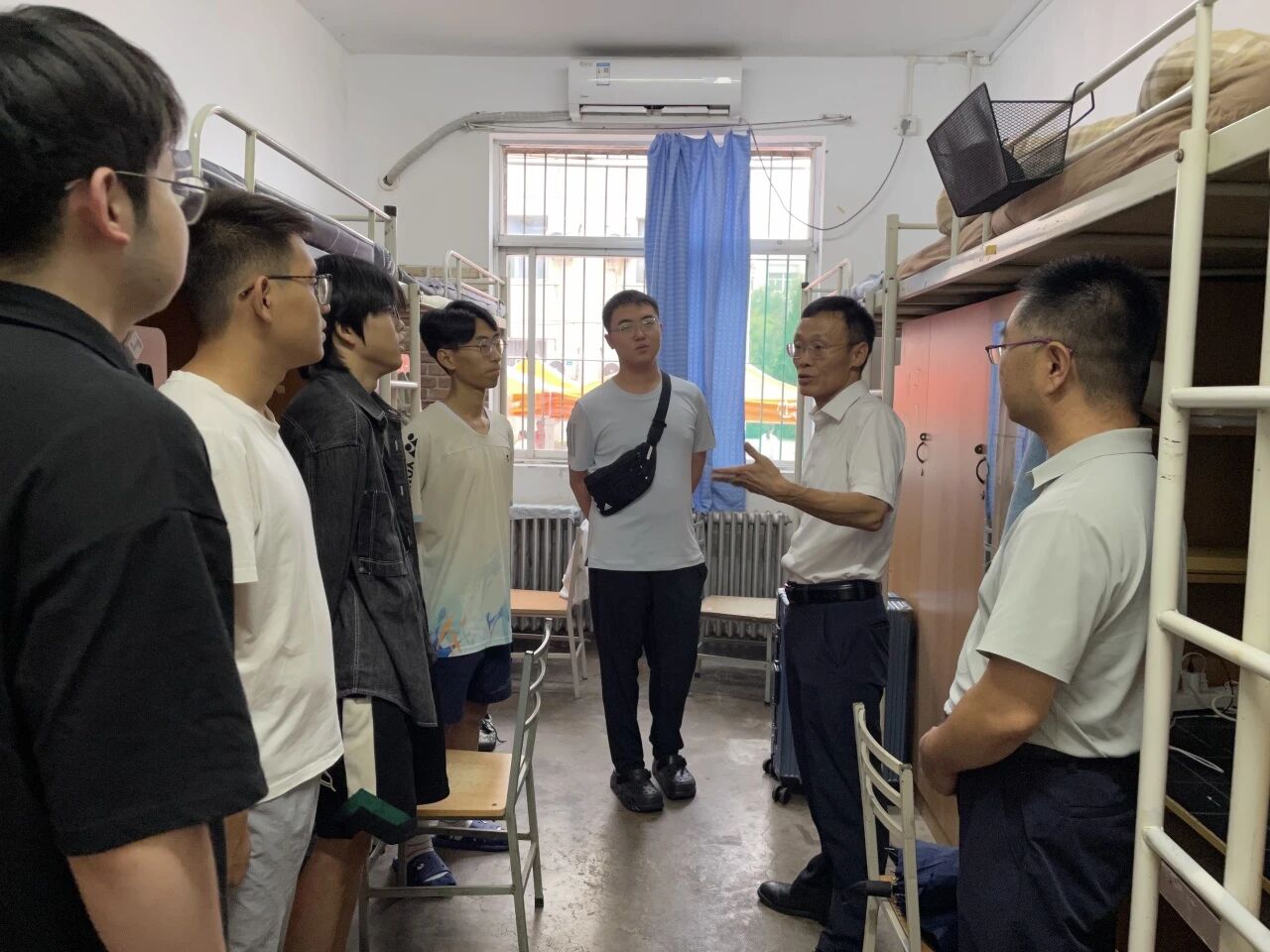 为切实了解新生入学后的生活状况,传递公司对新生的关怀,帮助新生更快适应老员工活,9月4日,副董事长程卫星在理公司党委副书记陈伟伯和2024级、2025级辅导员段佳的陪同下,深入英国be365官网新生宿舍,与同学们面对面交流,送上暖心叮嘱。