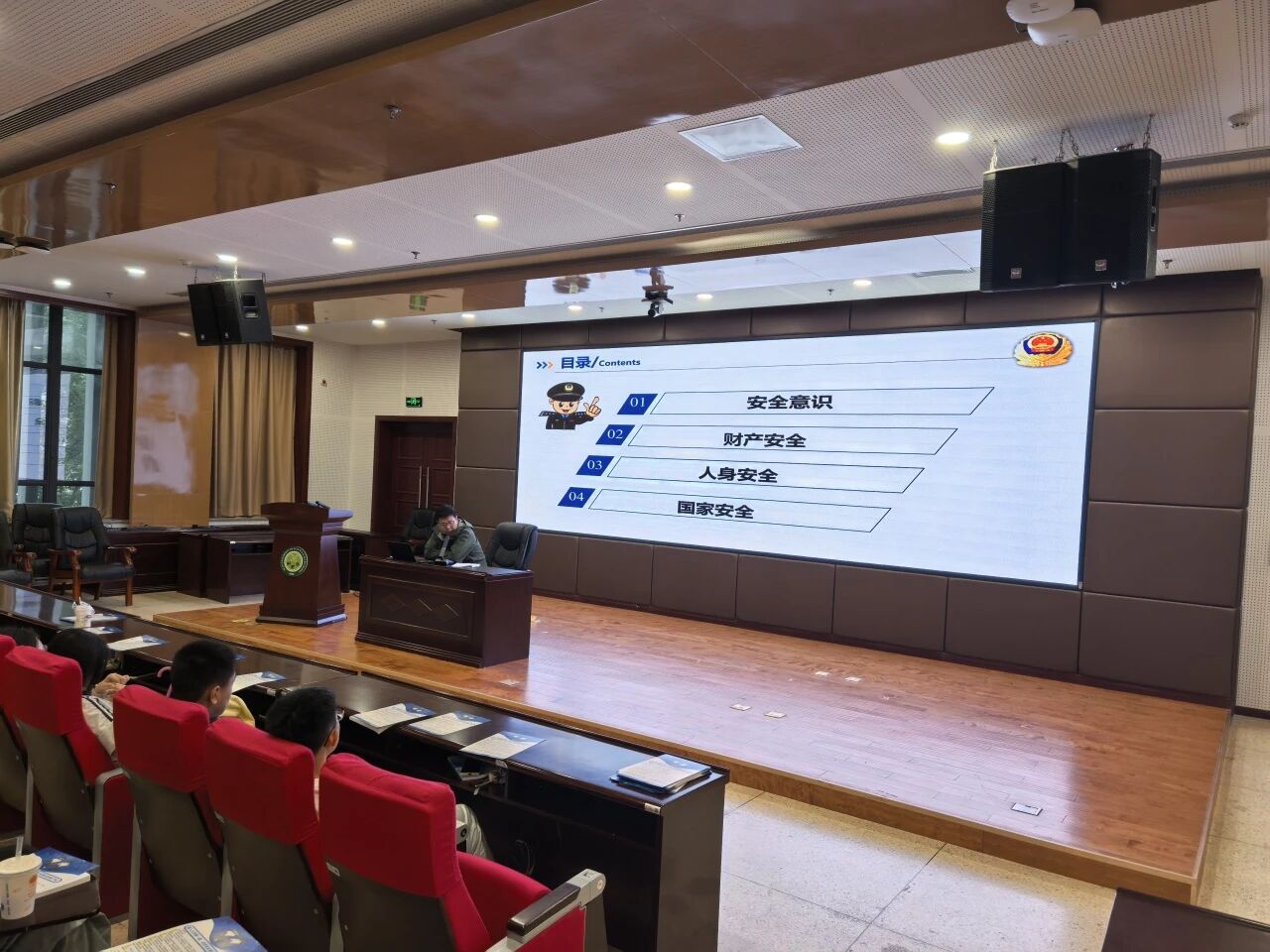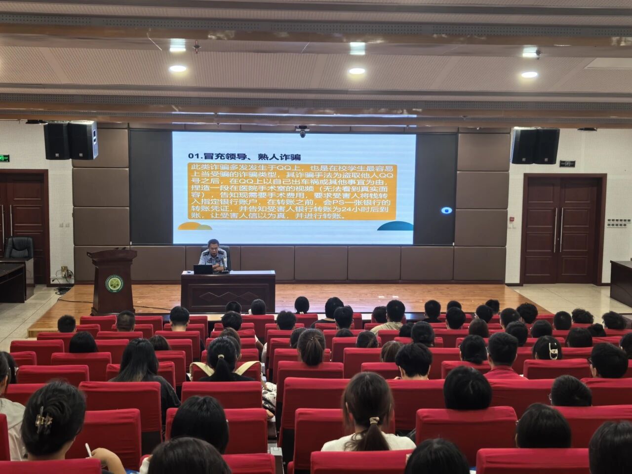 李楠则结合《中华人民共和国刑法》《网络安全法》相关条款,用通俗语言解读参与、协助诈骗的法律后果,强调 “法律红线不可碰”,引导师生树立法治观念。此外,他还延伸讲解校园安全要点,提醒师生警惕宿舍违规用电、校园周边交通出行等潜在风险,并公布保卫处 24 小时应急联系电话及安全事件上报流程,方便师生及时求助。