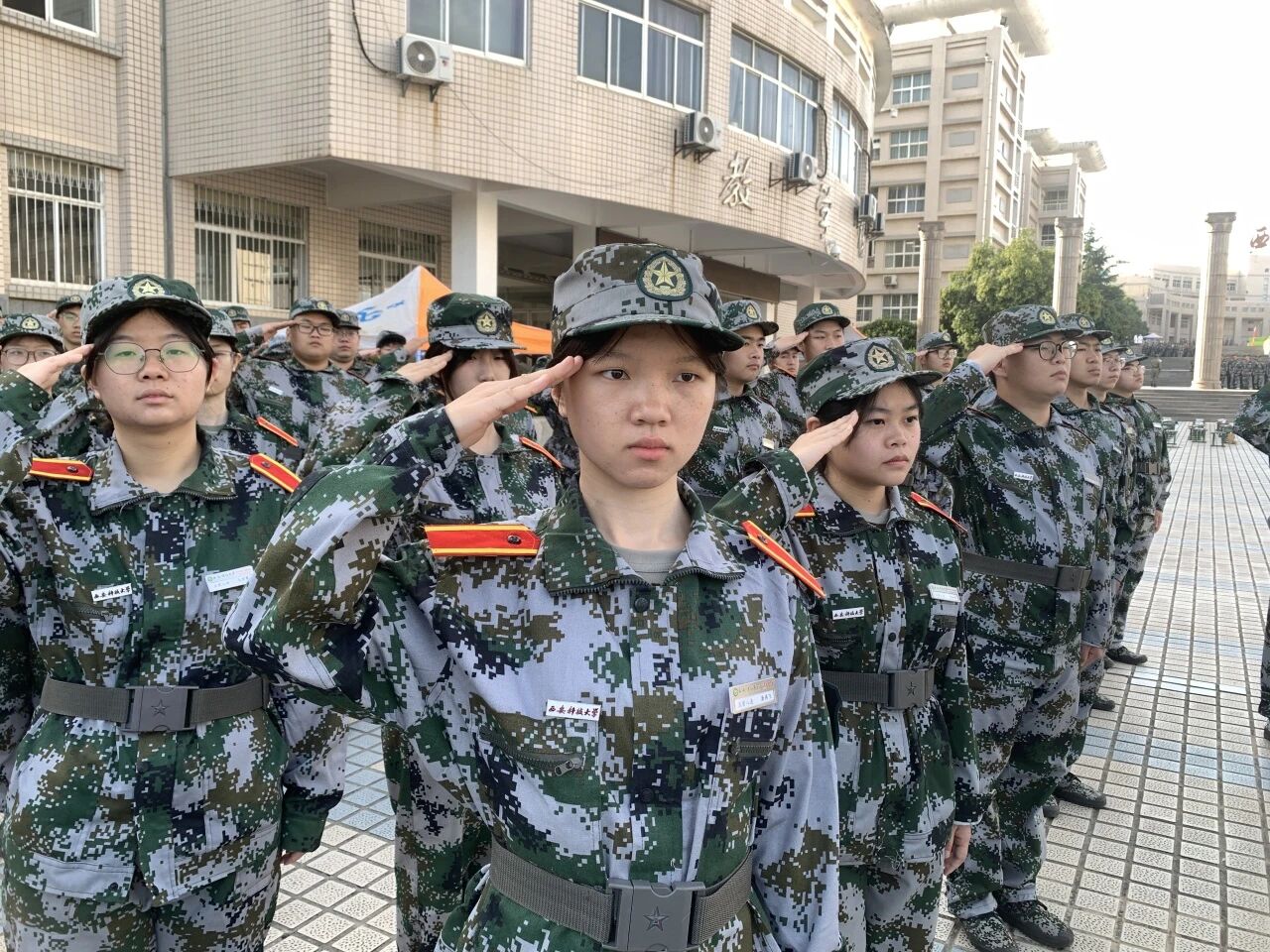 清晨,哨声响起,同学们迅速集结,开启新一天的训练。在教官的严格指导下,同学们全神贯注地投入到敬礼动作的练习中。从手型的规范到手臂的伸展,从眼神的专注到身体的挺拔,每一个细节都被反复雕琢。教官耐心地纠正每一位同学的动作,确保大家掌握标准的敬礼姿势。同学们也认真领会动作要领,不断调整自己的姿态,力求做到完美。