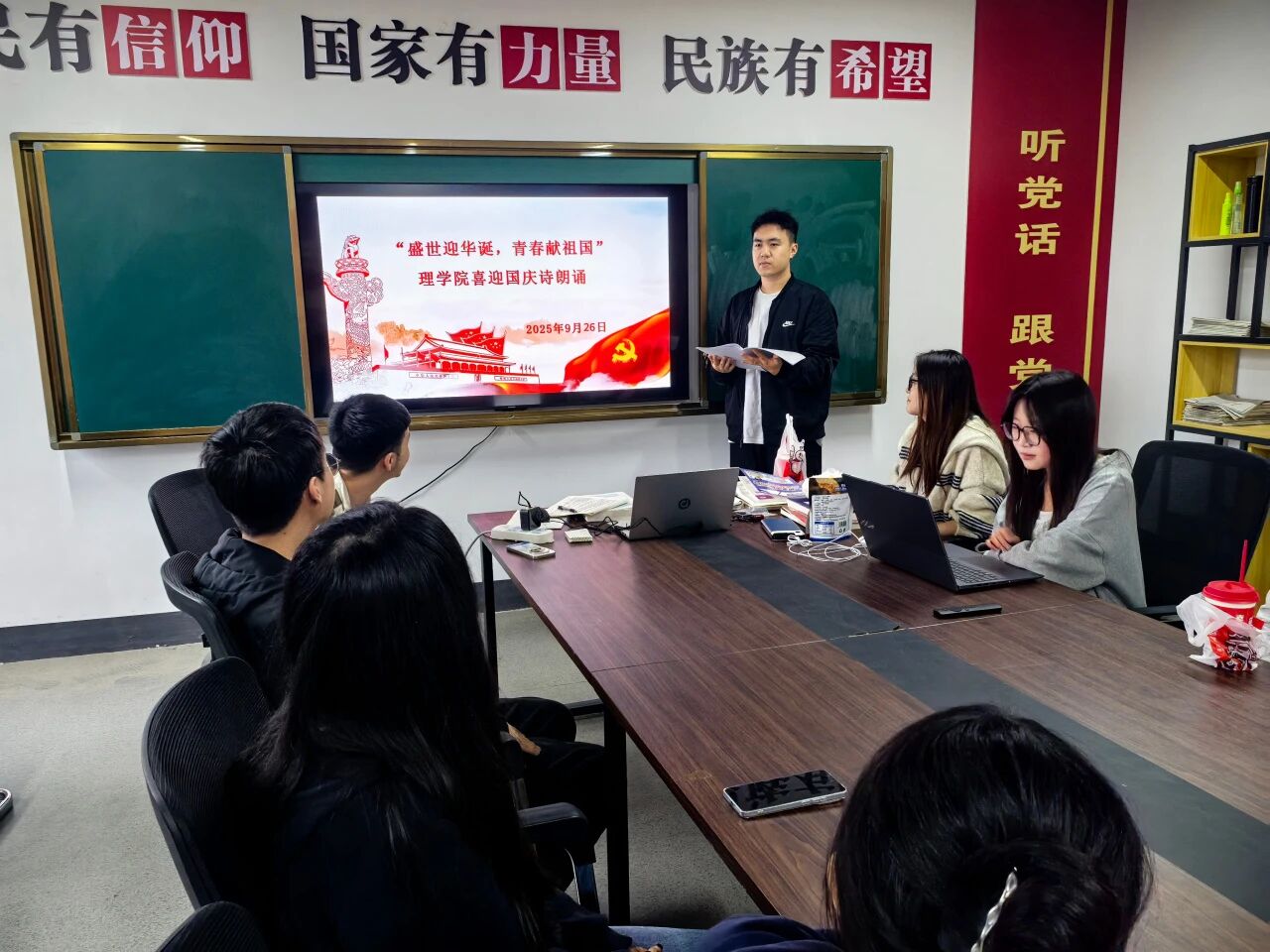 参与活动的同学们依次登台,他们精神饱满,声情并茂地朗诵了《我的祖国》、《青春中国》等经典诗篇。或慷慨激昂,或深情款款,铿锵有力的字句与真挚饱满的情感交织,深情回顾了新中国76年来波澜壮阔的奋斗历程和举世瞩目的辉煌成就,生动展现了中华民族自强不息的伟大精神和中华儿女对祖国的无限眷恋。