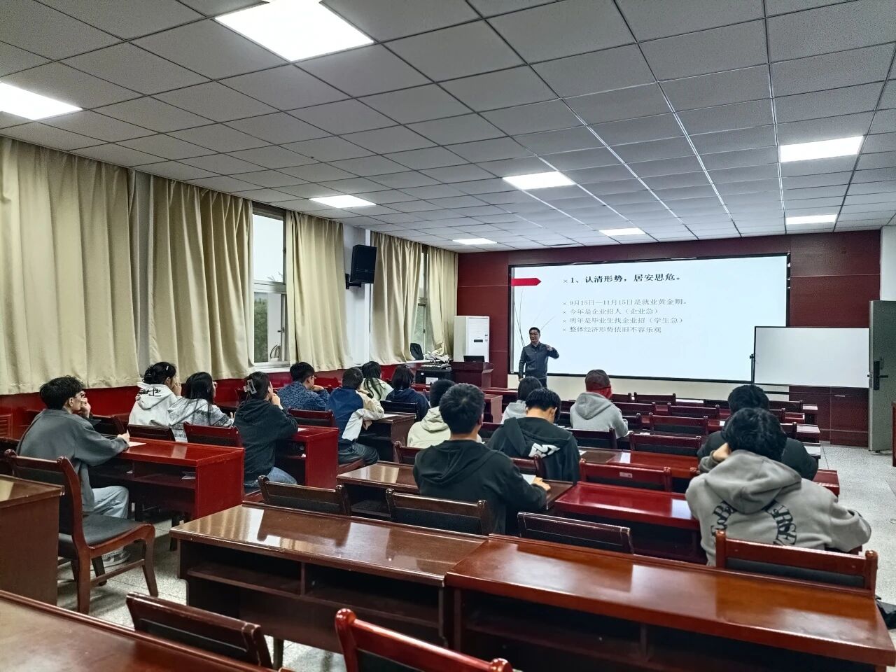 陈伟伯首先指出,本次会议旨在引导同学们认清当前严峻的就业环境,明确个人目标,为即将到来的毕业季与人生新阶段做好全方位准备。他强调,大四是承前启后的关键转折点,同学们必须增强紧迫感,尽早规划,积极行动。