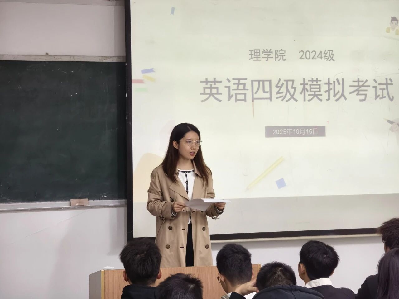 2024级辅导员段佳首先向同学们详细介绍了考试流程和注意事项。她着重强调了时间分配的重要性,提醒大家在考试过程中要合理安排各部分答题时间,避免出现题目未完成的情况。她还特别交代了听力考试的注意事项,建议同学们在听力播放前抓紧时间浏览选项,做到心中有数。段佳表示希望通过这次模拟考试,同学们能够熟悉考试节奏,掌握应试技巧,为即将到来的英语四级考试做好充分准备。
