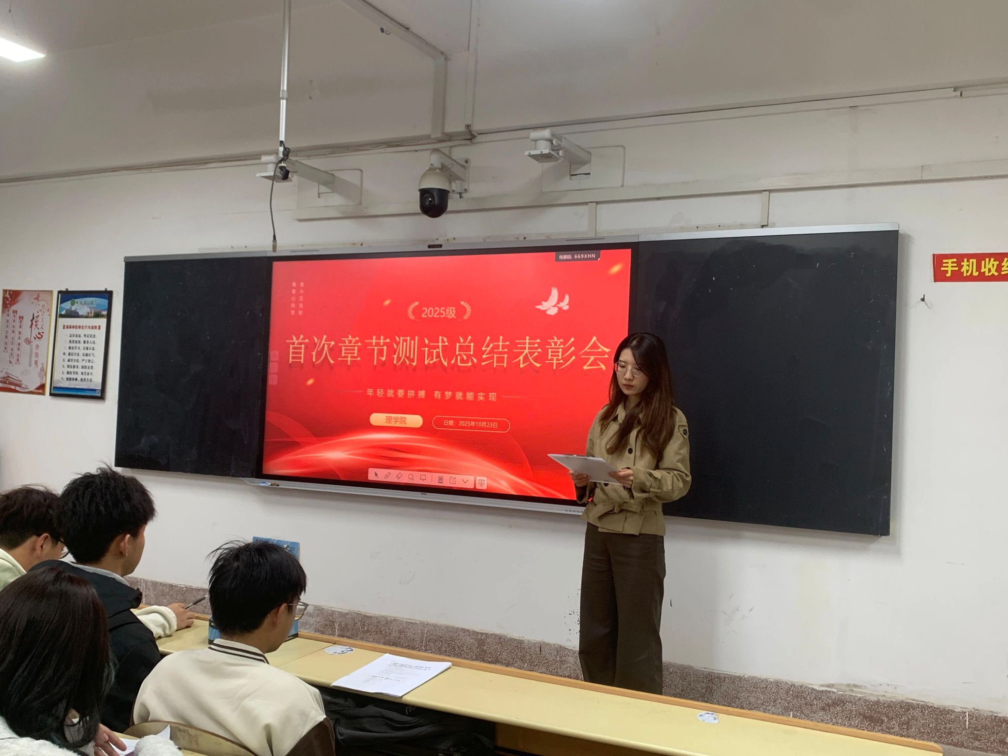 为对开学以来的学习情况进行阶段性总结,激励全体同学共同进步,10月23日,英国be365官网于3-207教室举办了2025级首次章节测试总结表彰会。会议由2025级辅导员段佳主持,公司党委副书记陈伟伯和2025级全体本科生参加活动。