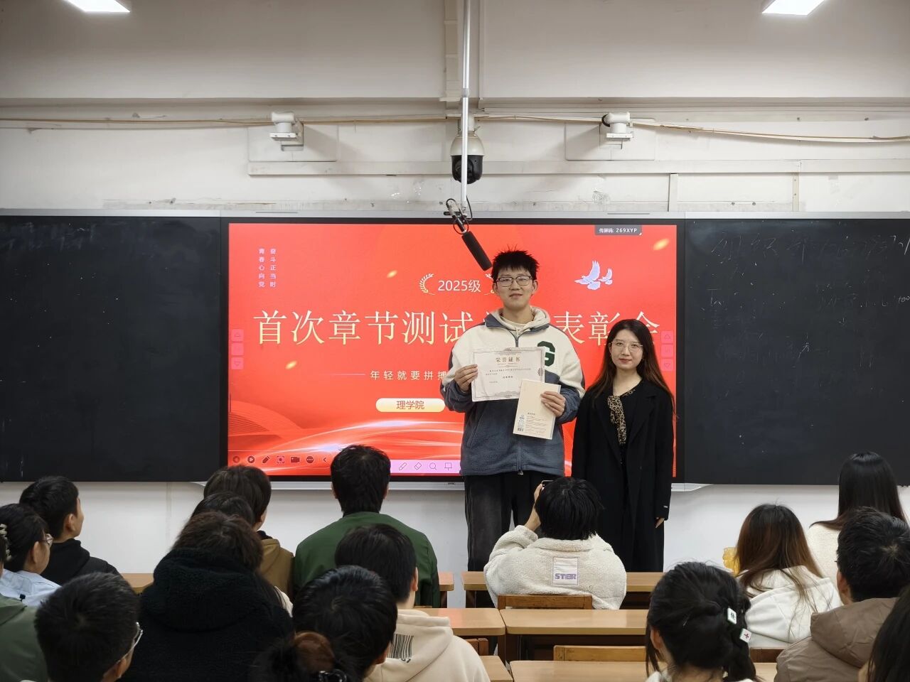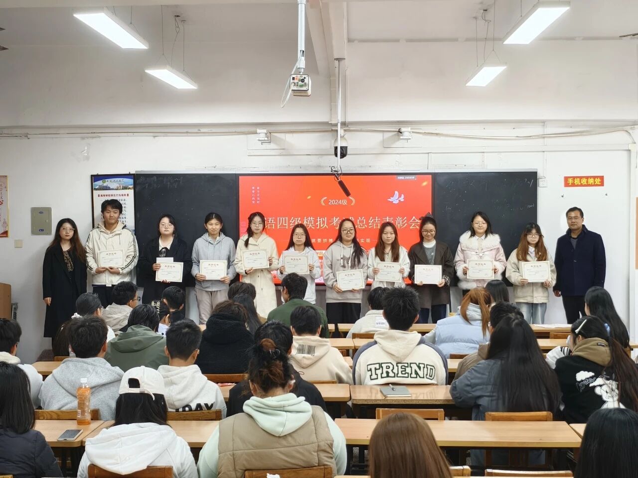 随后,会议进入隆重的表彰环节。侯斌刚为每个班成绩优异的同学颁发了奖状和奖品,以表彰他们的优异表现。获奖名单如下: