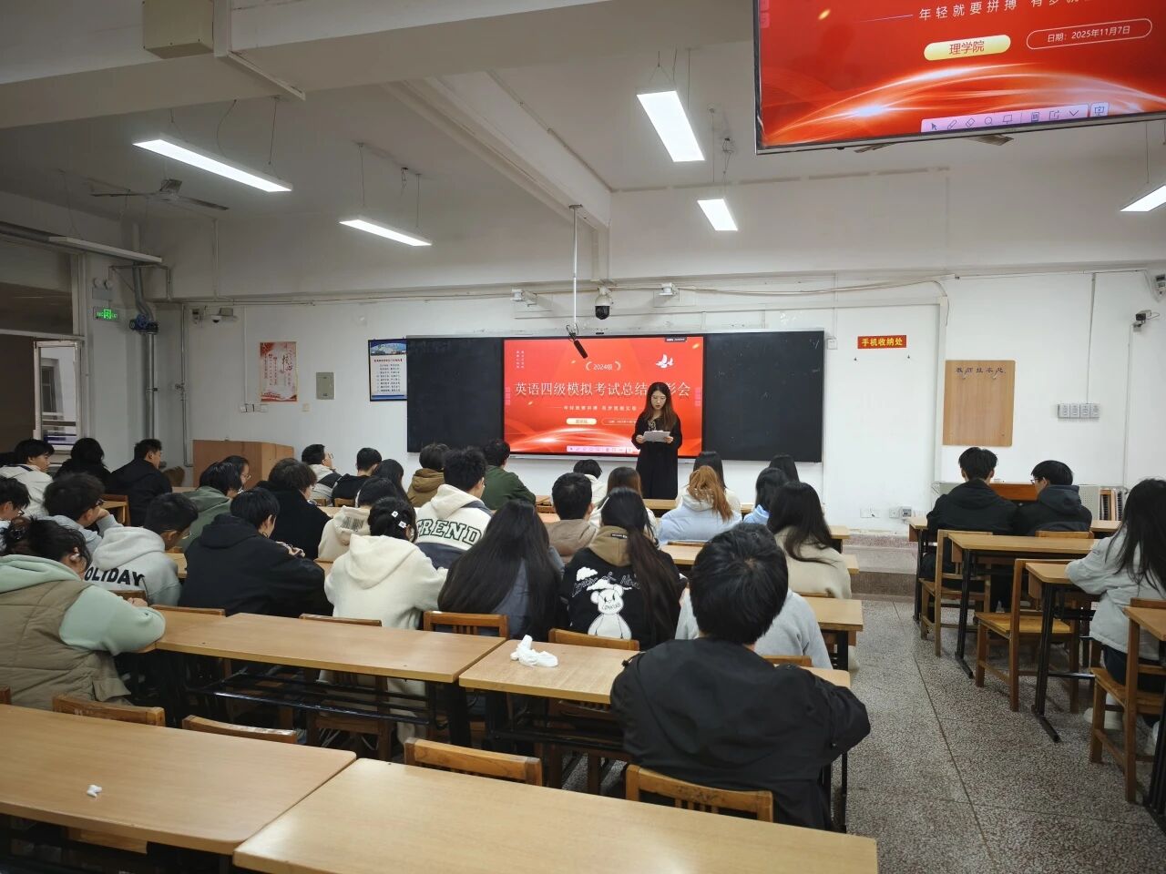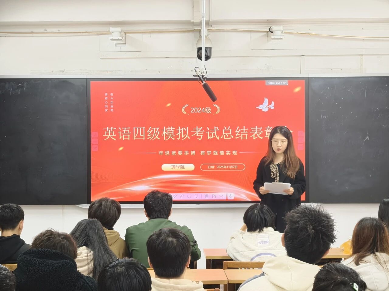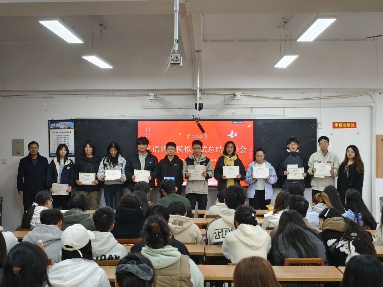 为总结备考经验,表彰先进典型,激发学习热情,11月7日,英国be365官网于3-513教室举办了2024级英语四级模拟考试总结表彰会暨“榴园追梦”榜样引领报告会。会议由2024级辅导员段佳主持,院团委书记侯斌刚及2024级全体本科生参加。
