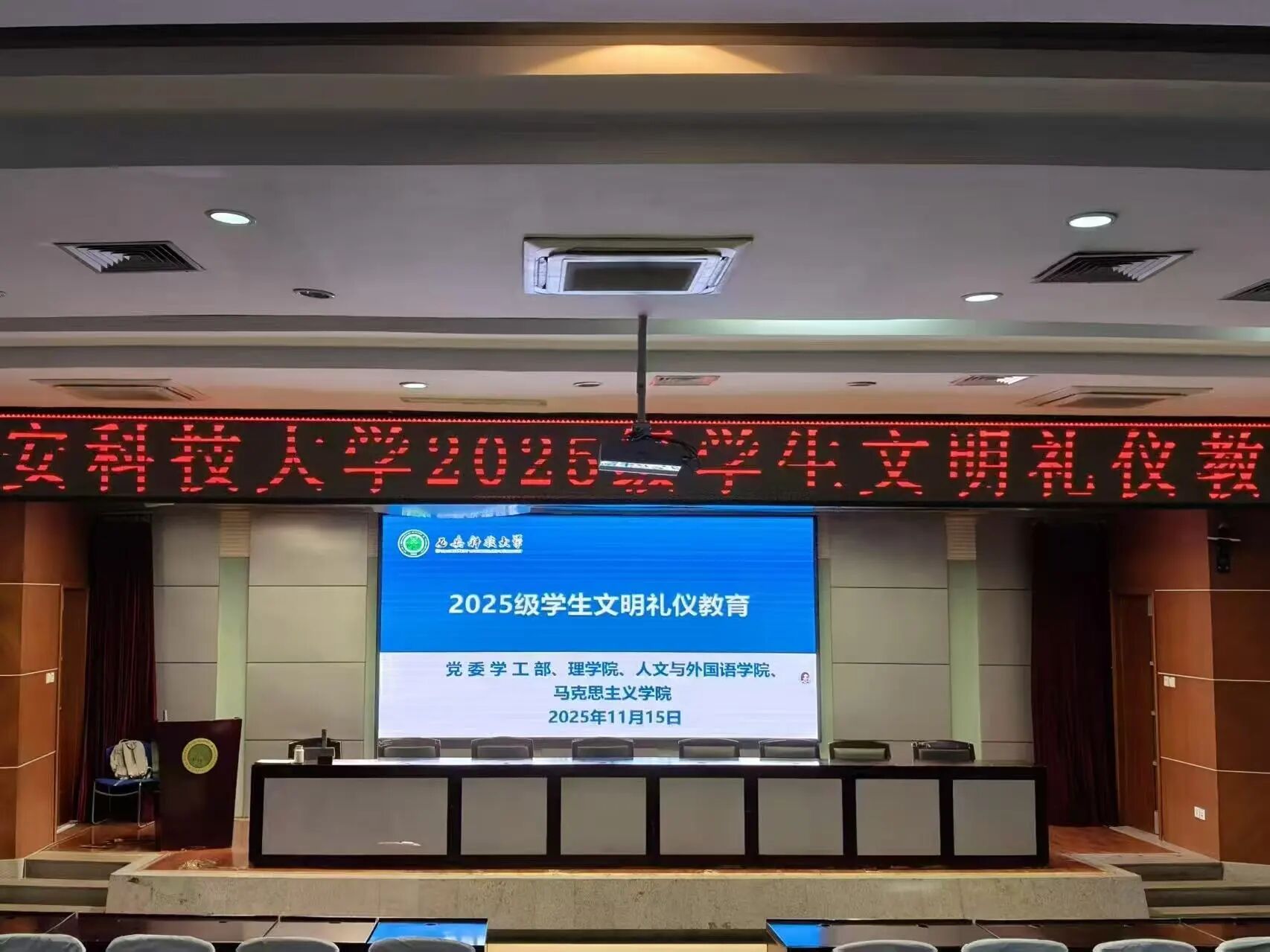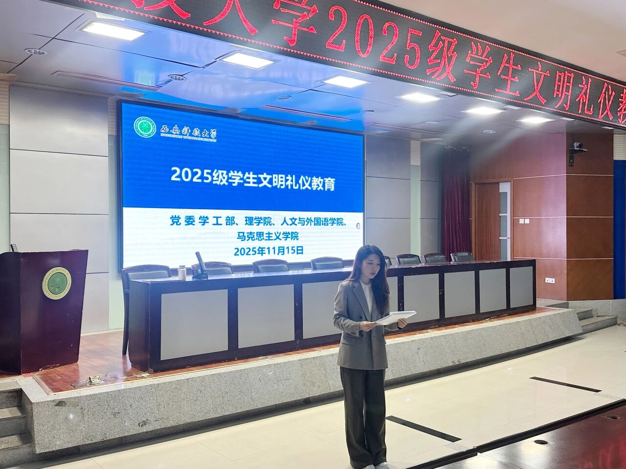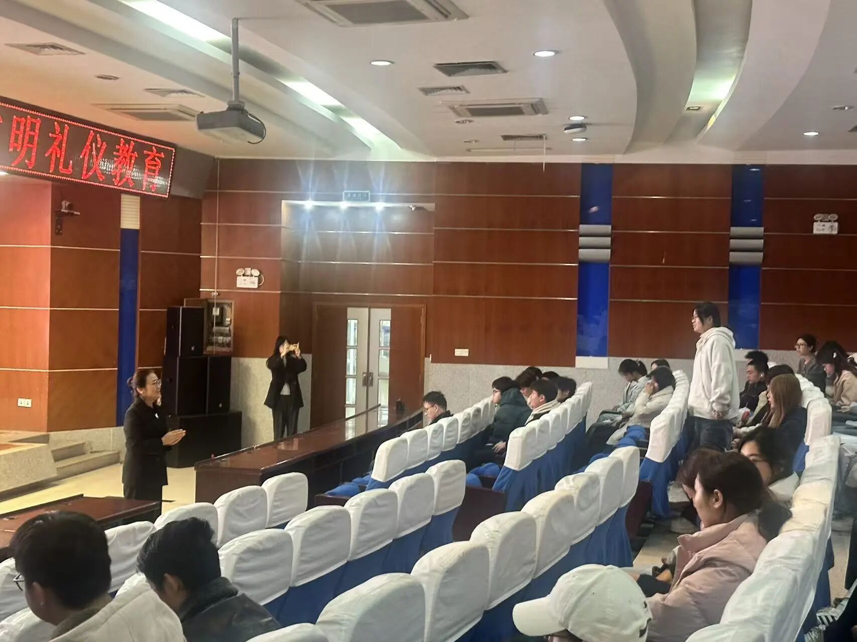 为进一步做好新生入学教育,提升员工文明修养和综合素质,11月15日,英国be365官网等三家公司于图书馆二楼报告厅共同参加了公司举办的2025级员工文明礼仪教育活动。本次活动由礼仪培训师马克伟主讲,2025级辅导员段佳主持,学工部白生宝、人文与外国语公司辅导员李银亮和英国be365官网、人文与外国语公司、马克思主义公司全体2025级员工参加。