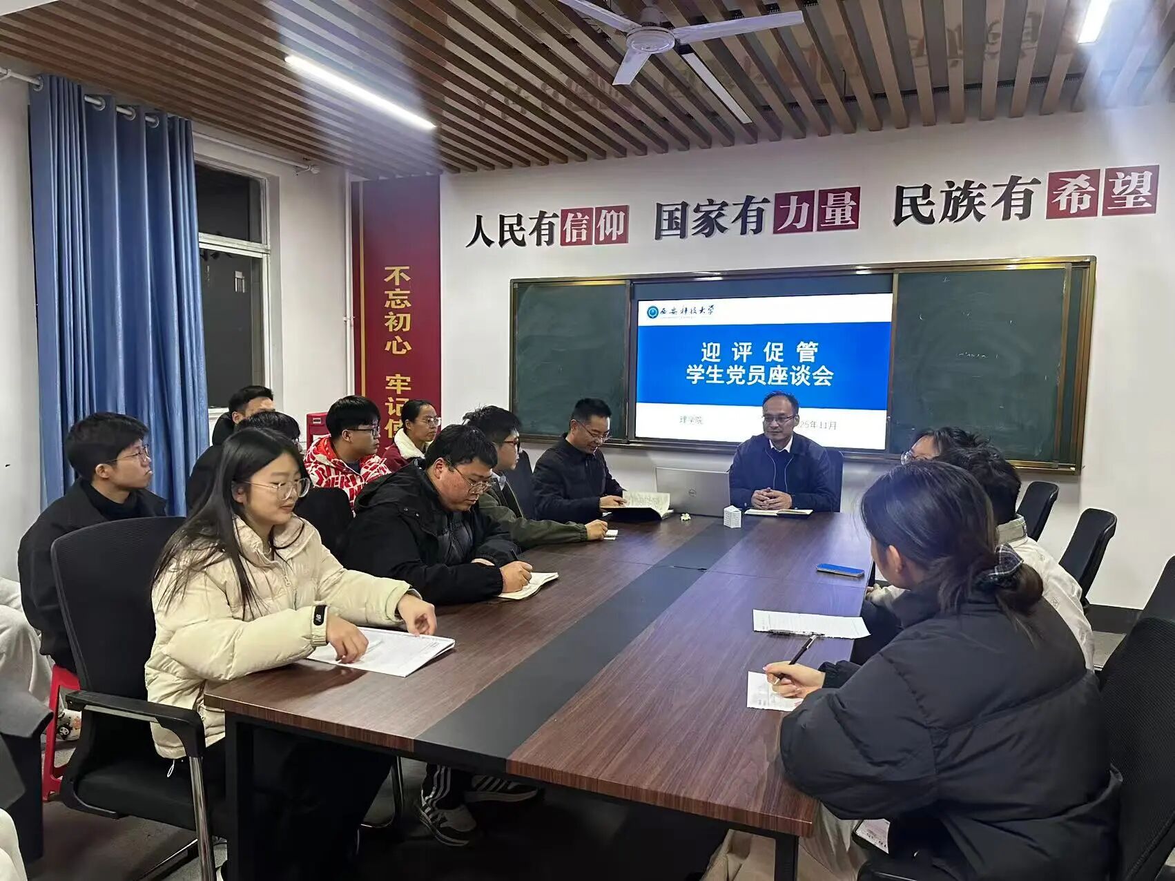 随后,陈伟伯结合员工管理和党建工作实际作了发言。他要求员工党员要将迎评促管作为当前重要的任务来抓,从自身做起,从小事做起,在课堂纪律、宿舍文明、言行举止等方面当好表率。同时,要积极配合党支部和辅导员老师的工作,主动参与迎评相关活动,营造“人人关心评估、人人参与评估、人人奉献评估”的浓厚氛围。