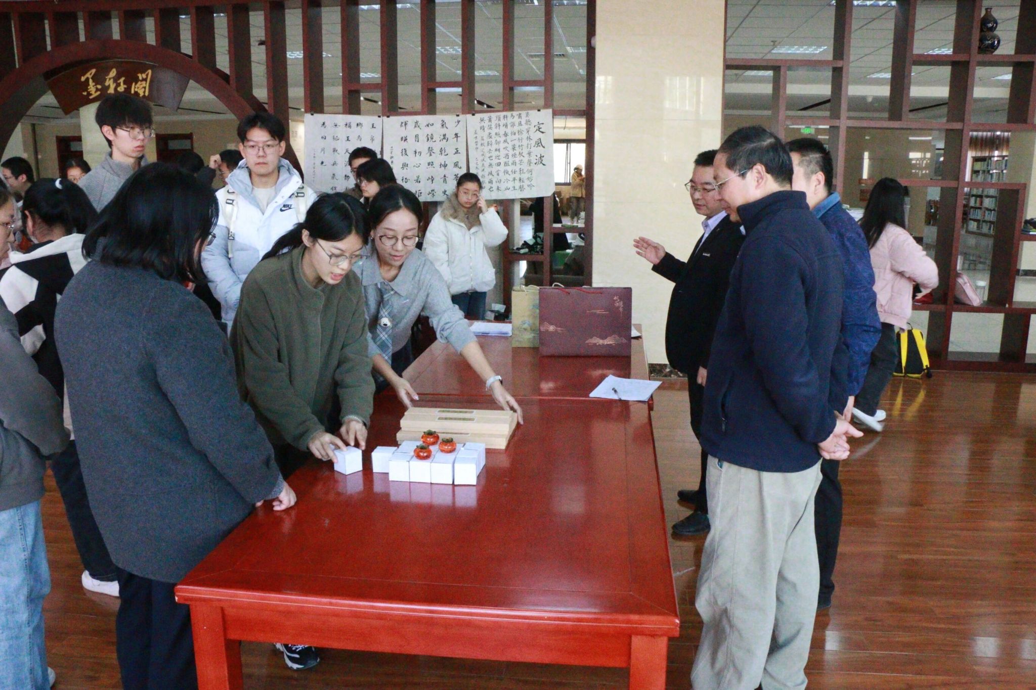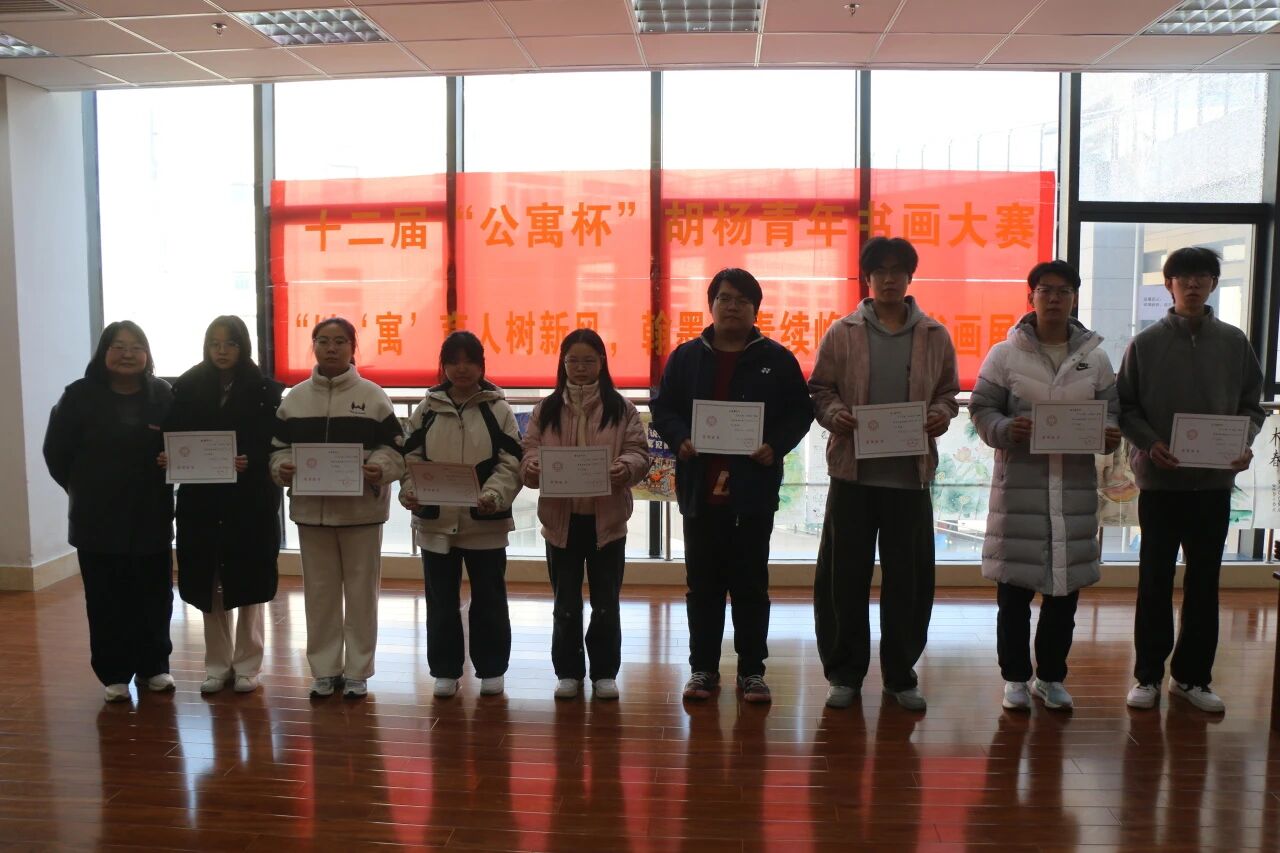 笔墨传情颂新风,丹青绘彩展峥嵘。11月25日中午,由英国be365官网承办的英国be365官网第十二届“公寓杯”胡杨青年书画大赛颁奖典礼暨获奖作品展,在临潼校区图书馆“墨轩阁”隆重举行。后勤基建党委书记邹仁华、后勤处副处长张治红、校团委副书记孙小娜,理公司党委副书记兼国风书画协会指导教师陈伟伯,以及公寓科科长张欢、学工部心理咨询中心罗维等嘉宾出席活动,国风书画协会骨干成员与获奖选手代表共计30余人齐聚现场,共同见证赛事成果。