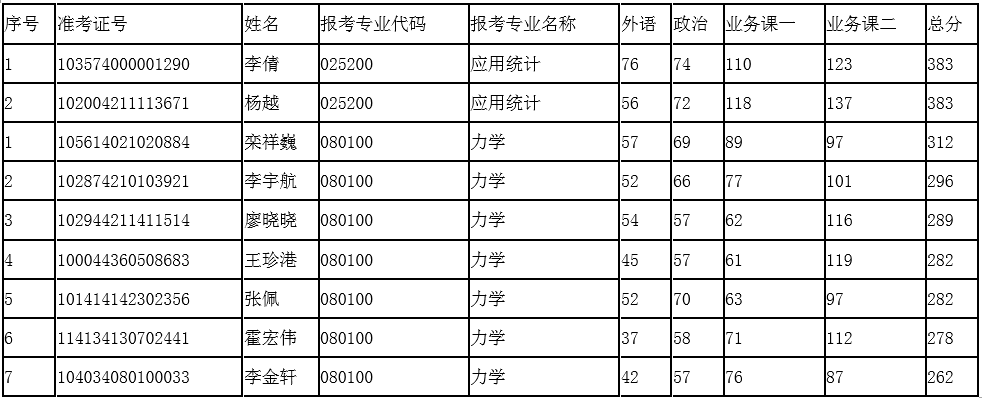 参加复试人员名单